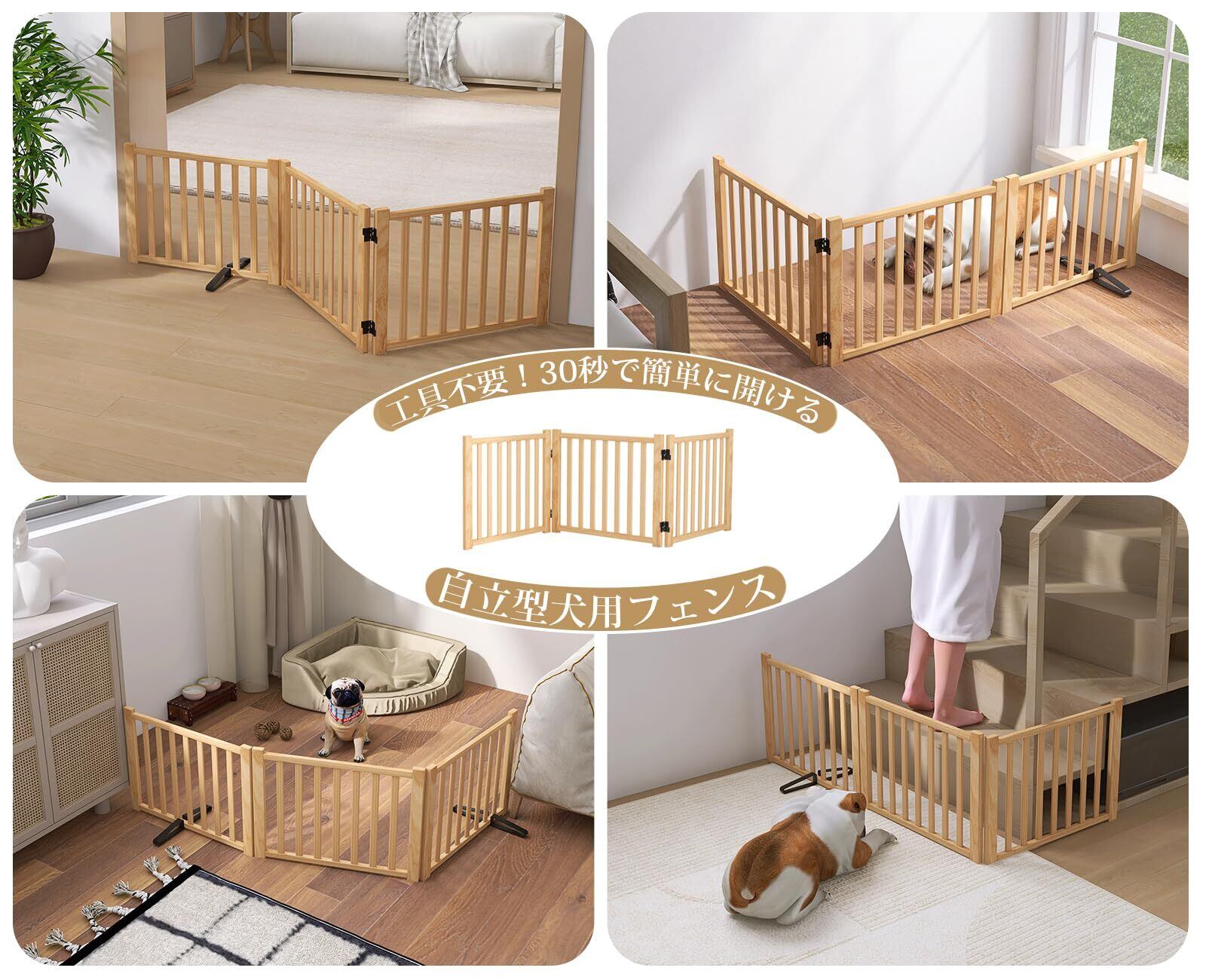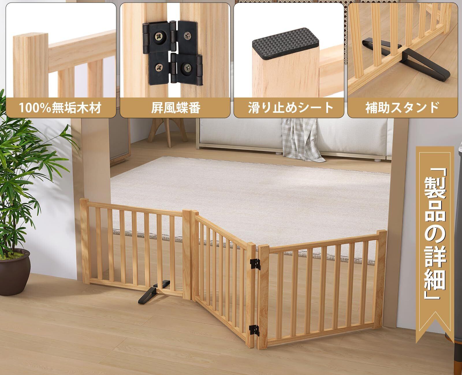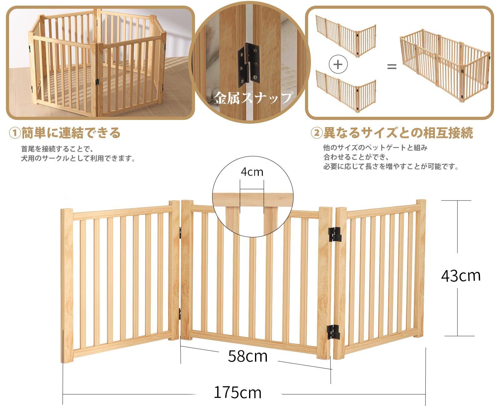 【2022最新】Oapety ペットゲート 置くだけ 犬 ゲート ペットフェンス 高さ43cm 幅175cm 自立型ゲート 折りたたみ式 犬フェンス 室内用 ペット飛び出し防止柵 木製 玄関 軽量 | wakuwakuland