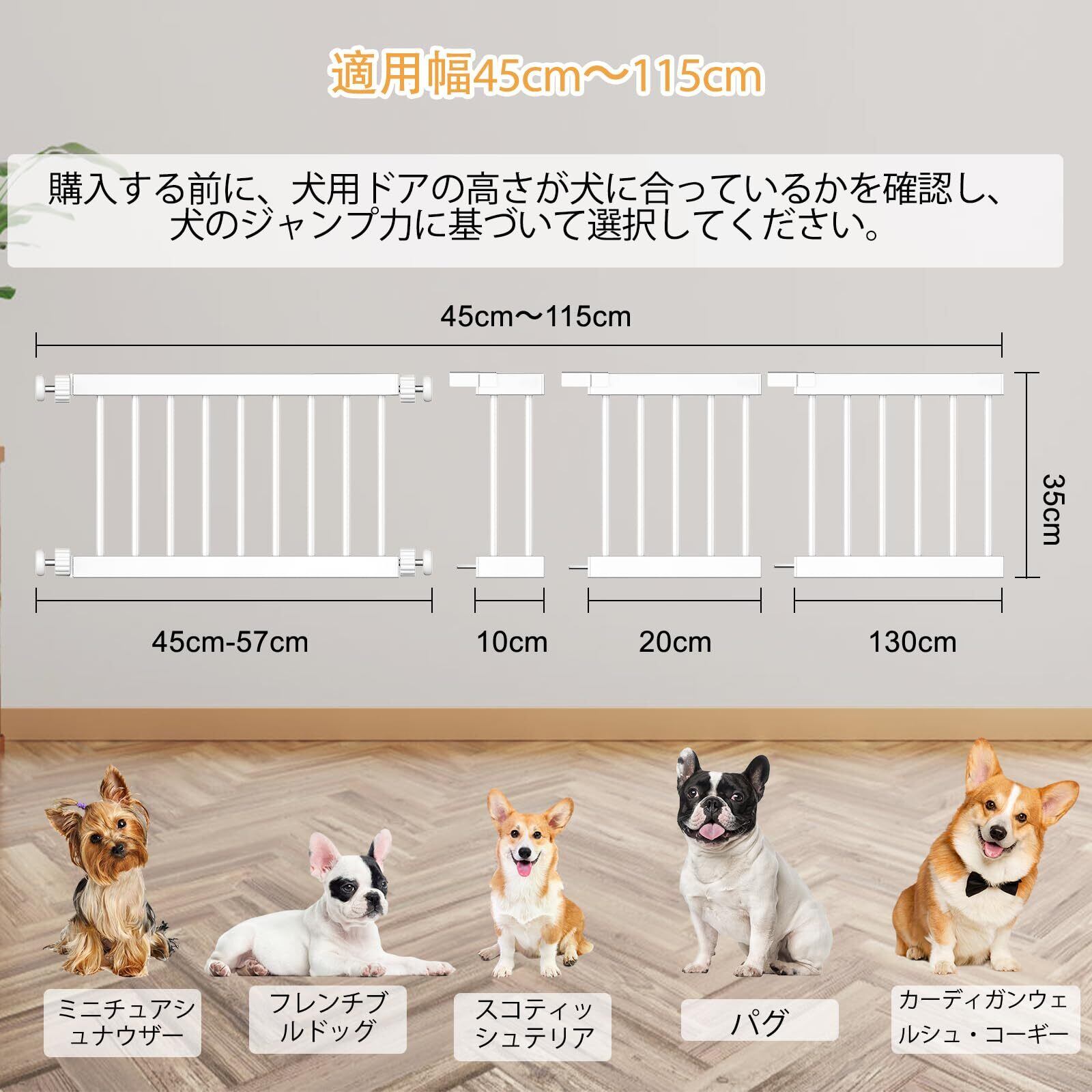 【幅広いペットゲート】ペットゲートは設置幅45cm-115cm,リビングルーム、部屋、バルコニー、階段、キッチン、ベッドルーム、バスルームで広く使用されています。ペットに入って欲しくない場所の仕切りに最適なペット ゲートで.