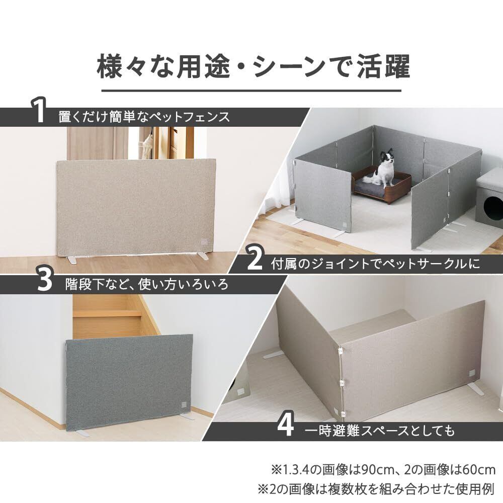 ●フェンスはペットがいる部屋側に立て、脚パーツの長い方を内側にし、両端部を片側5cm以上壁に重ねて隙間がないように設置してください。●こちらの商品はお客様組み立てとなります。●取扱説明書をよくお読みになり正しくご使用ください。