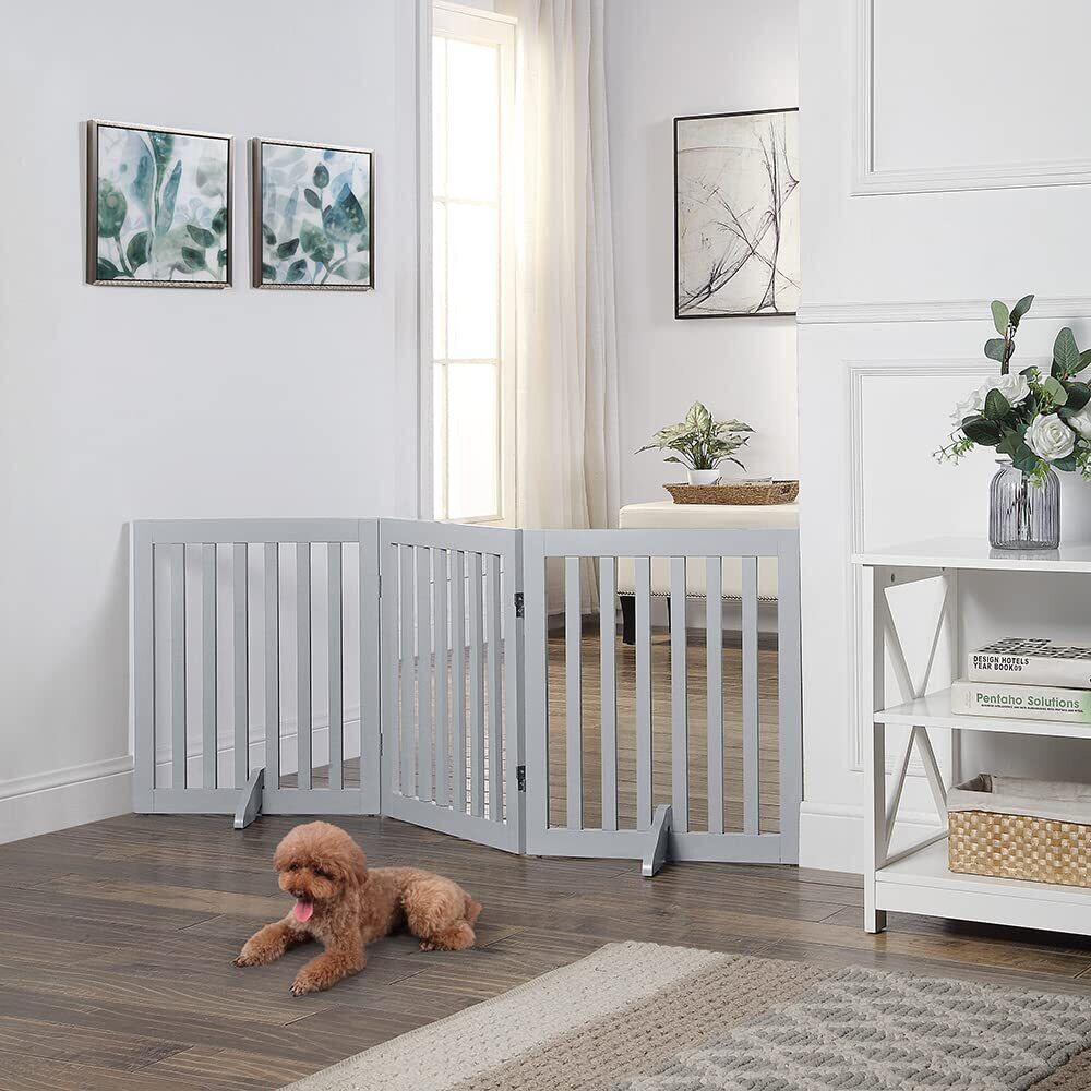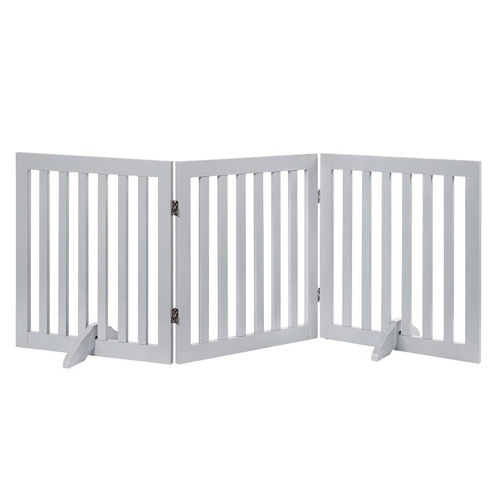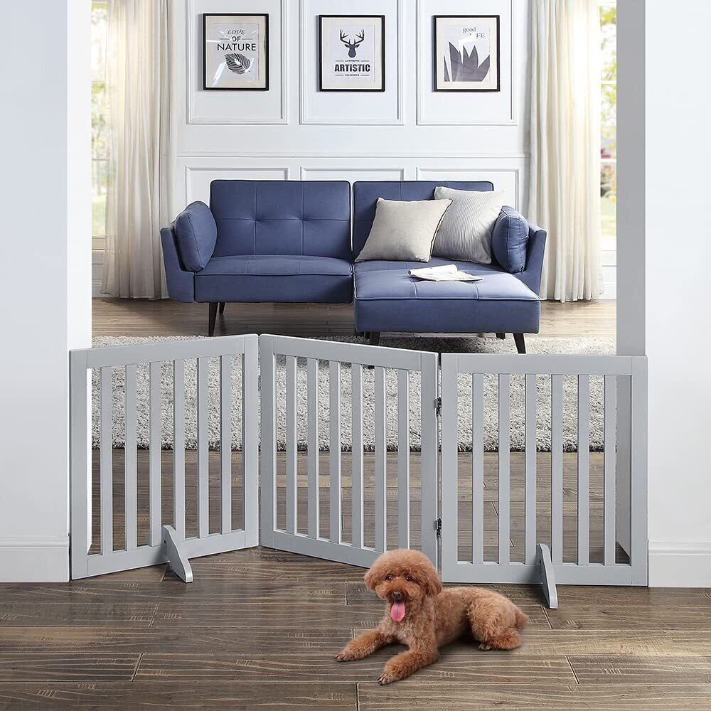 【特価商品】unipaws ペットゲート 置くだけ簡単 木製 折りたたみ式 伸縮可能(幅91-146cm 高さ61cm) 玄関/階段/ドア用 ペットガード 小型犬 猫 脱走防止 飛び出し防止 収納便利 室内パーテーション ペットフェンス ペット用柵 犬用ゲート、折り式バリア、ペット用家具フェンス 、グレー | wakuwakuland