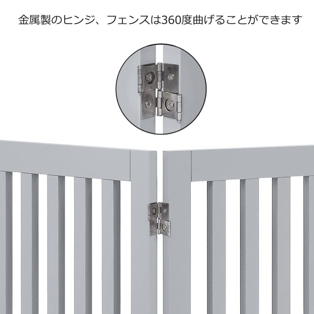 unipaws ペットゲート 置くだけ簡単 木製 折りたたみ式 伸縮可能(幅91-146cm 高さ61cm) 玄関/階段/ドア用 ペットガード 小型犬 猫 脱走防止 飛び出し防止 収納便利 室内パーテーション ペットフェンス ペット用柵 犬用ゲート、折り式バリア、ペット用家具フェンス 、グレー