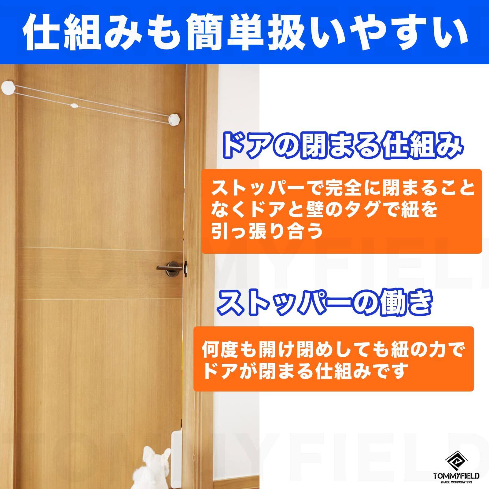 【半自動ペットドア】すぐの取り付けを実現するペット用品のゲートドアはゴム紐を調節することでドアの閉まる速度をアジャストすることができます。