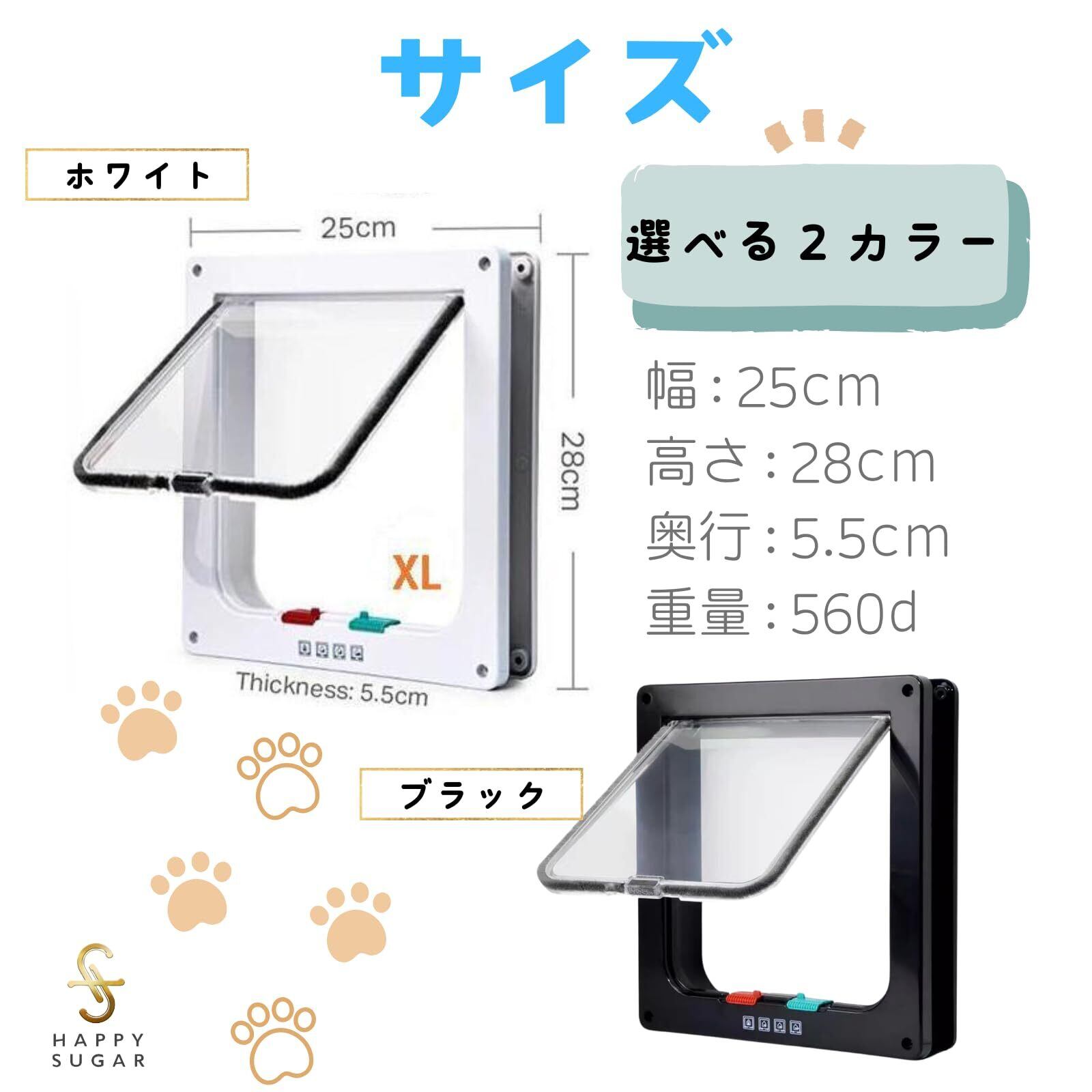 HAPPY SUGAR ペットドア キャットドア 猫 犬 扉 ドア 後付け ロック 出入り口 通り抜け 工事不要 DIY 取り付け 薄型 ゆったり開口扉 大きめ 出入口 XL (ホワイト)