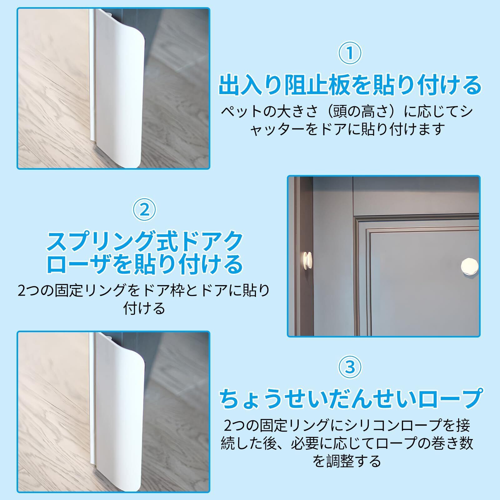 【高品質素材】ペットドアは高品質のプラスチック素材を採用し、丈夫で耐久性があり、アップグレードされた糸はより強く、壊れにくいです。シリコンロープは伸縮性があり、切れにくいので、長い間使用できます。