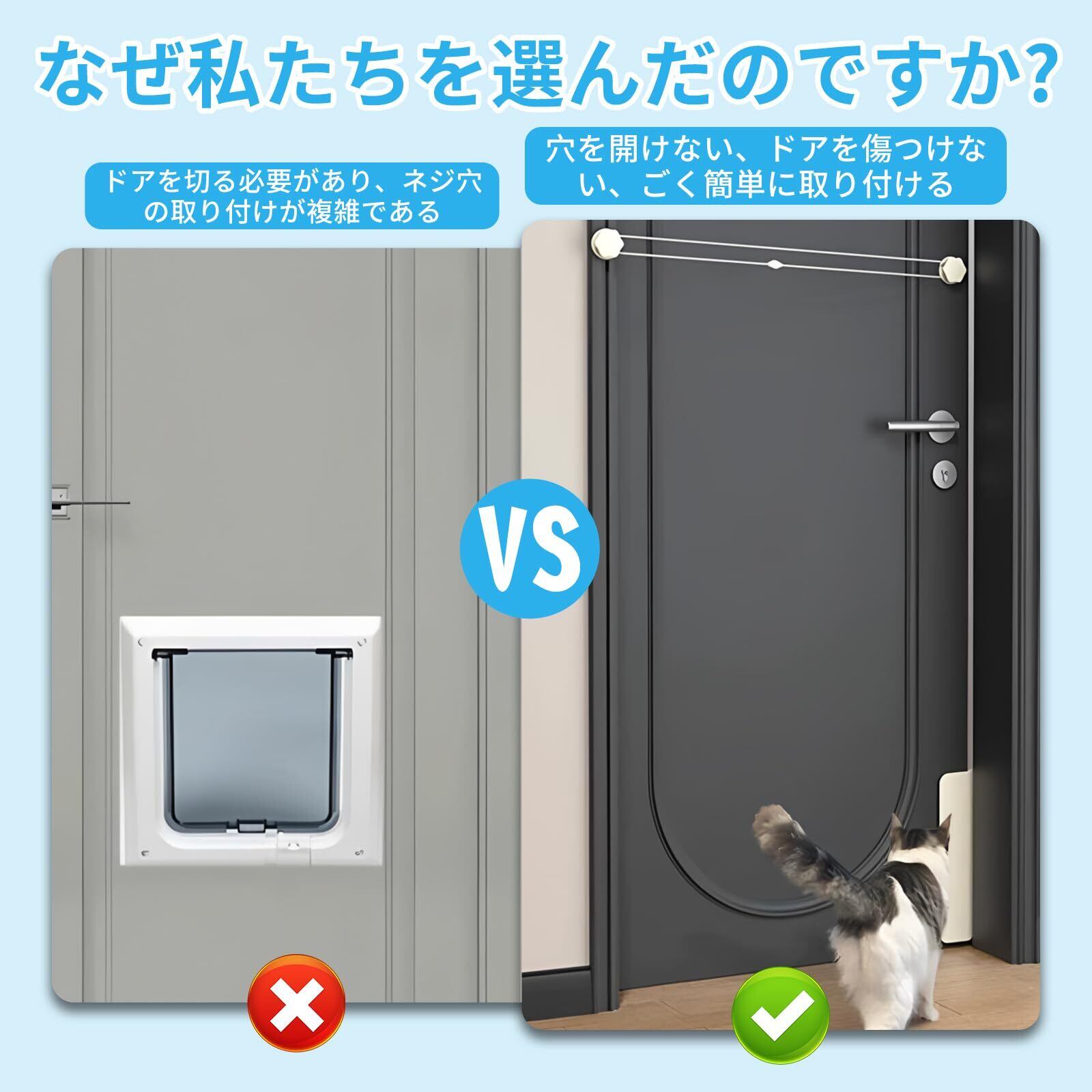 【幅広い用途】このペットドアは猫、犬、小型犬、中型犬、大型犬、シニア犬などあらゆるペットに適しています。 寝室、バスルーム、キッチンなどドアのある場所に適し、ペットが自分でドアを開けることができ、美容の睡眠を邪魔しません。