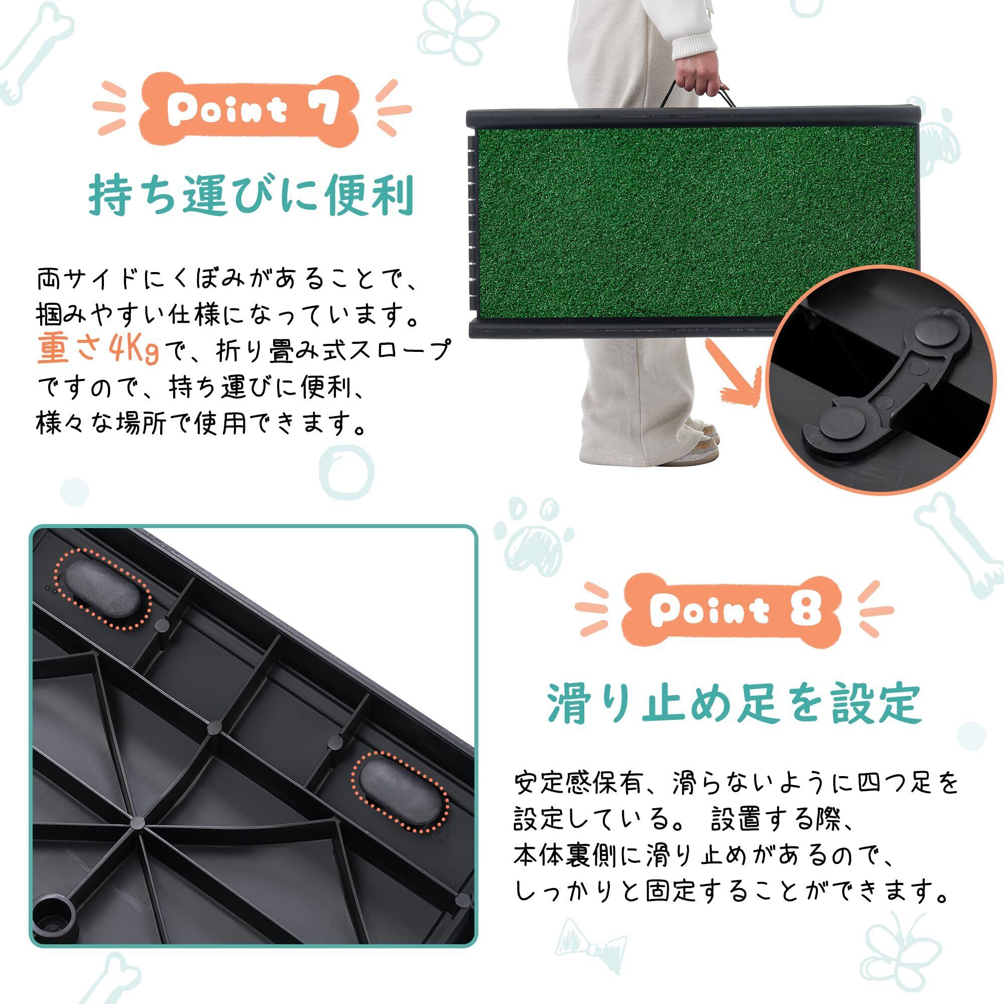 【在庫セール】BTM 新型 2つ折りドッグスロープ ペットスロープ 人工芝付き 犬用スロープ 犬ステップ 車用 折りたたみ ペットステップ 軽量 折り畳み 滑り止め 犬 ペット用 ドライブ 通院 介護用 収納便利 大型犬猫用スロープ 乗り降り ペット用階段 踏み台 | wakuwakuland