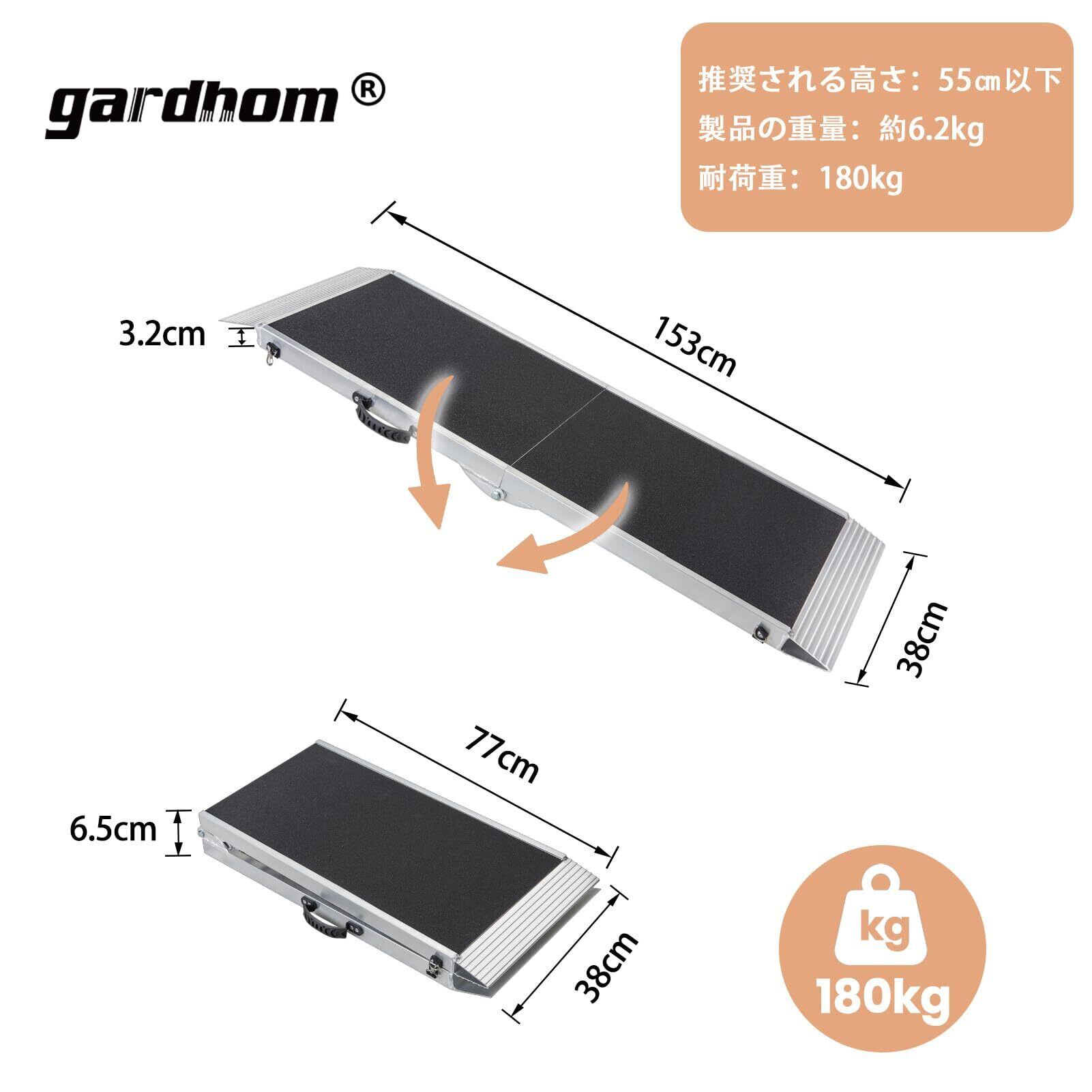 折り畳み アルミ スロープ 犬用, gardhom ペットスロープ 153*38CM 滑り止め 大型犬 関節を保護 アルミブリッジ 荷重180㎏ 玄関 段差解消55cm ドッグスロープ 屋外 車