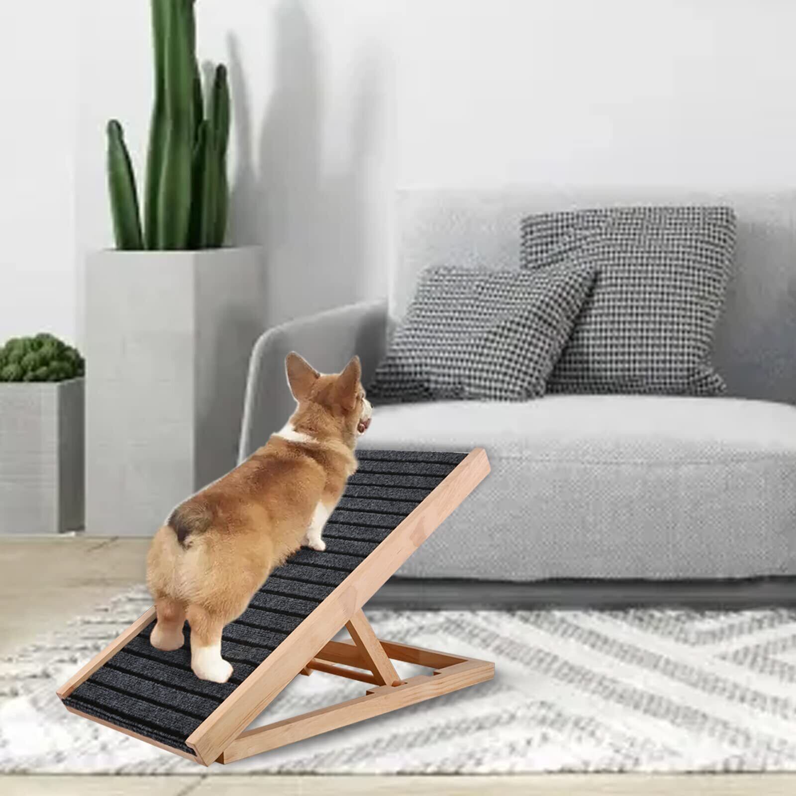 スリップ防止表面:ドッグ スロープの構造はソリッドウッドから成っています。スリップ防止パッドは足底および接合箇所の圧力を減らすことができるポリプロピレン繊維から成っています。高い牽引の表面はペットを楽に感じ、ペットは容易に立つことができます