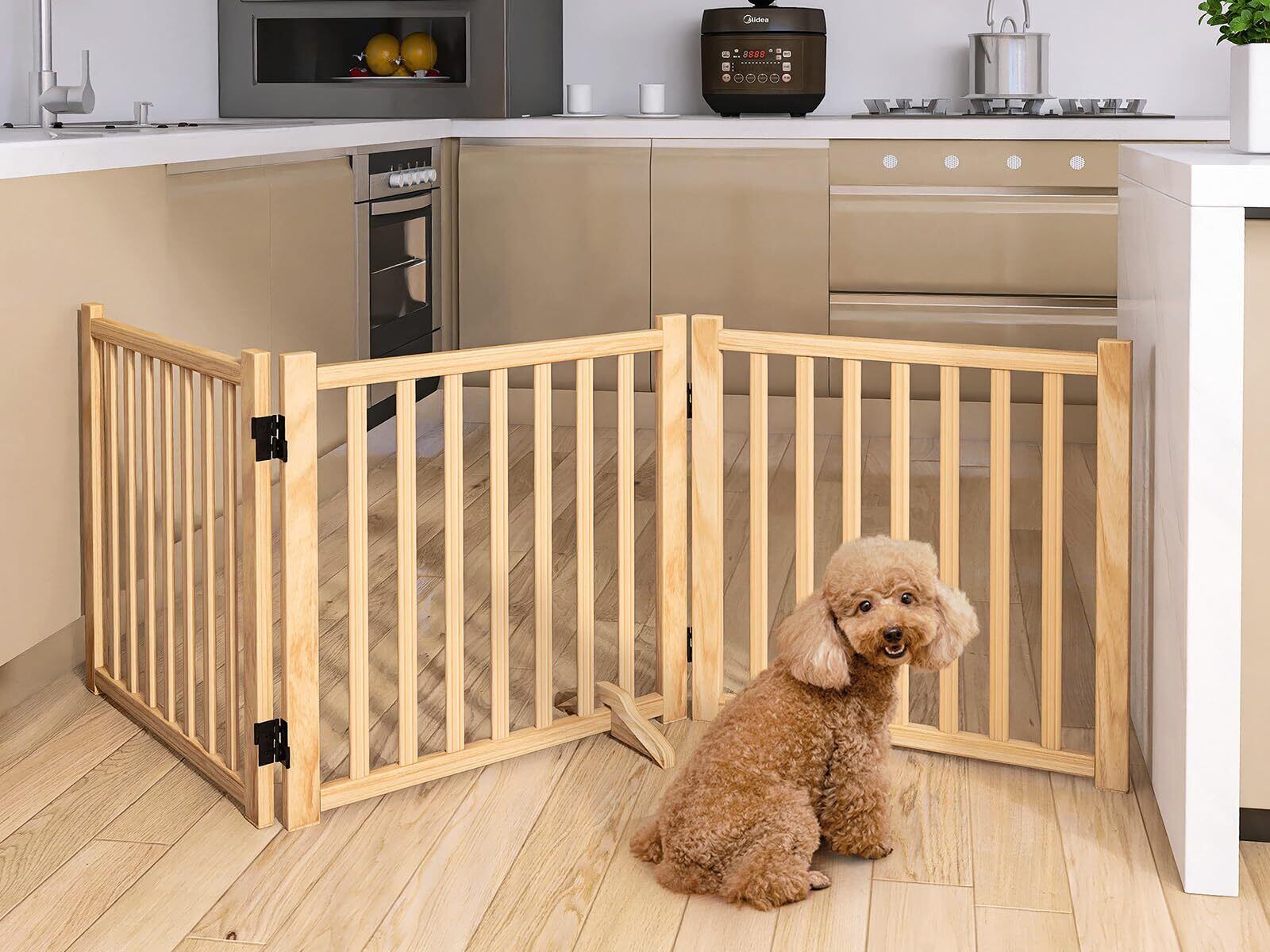 静かな空間を提供する木製フェンス:木製のため、金属製フェンスと比べて静かで、ペットに優しいです。同時に床との摩擦を減らすことができるので、床にも非常に友好的です。