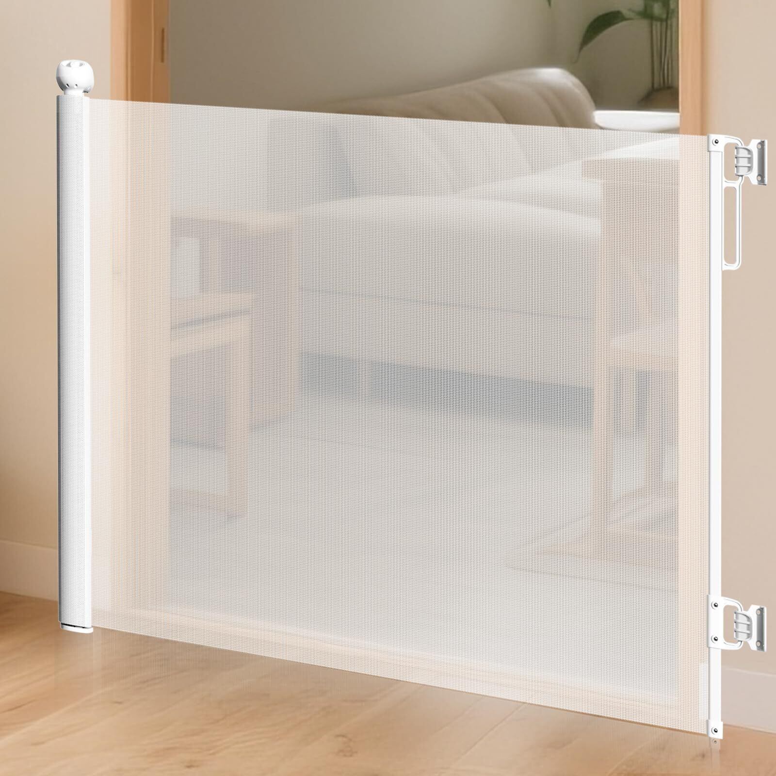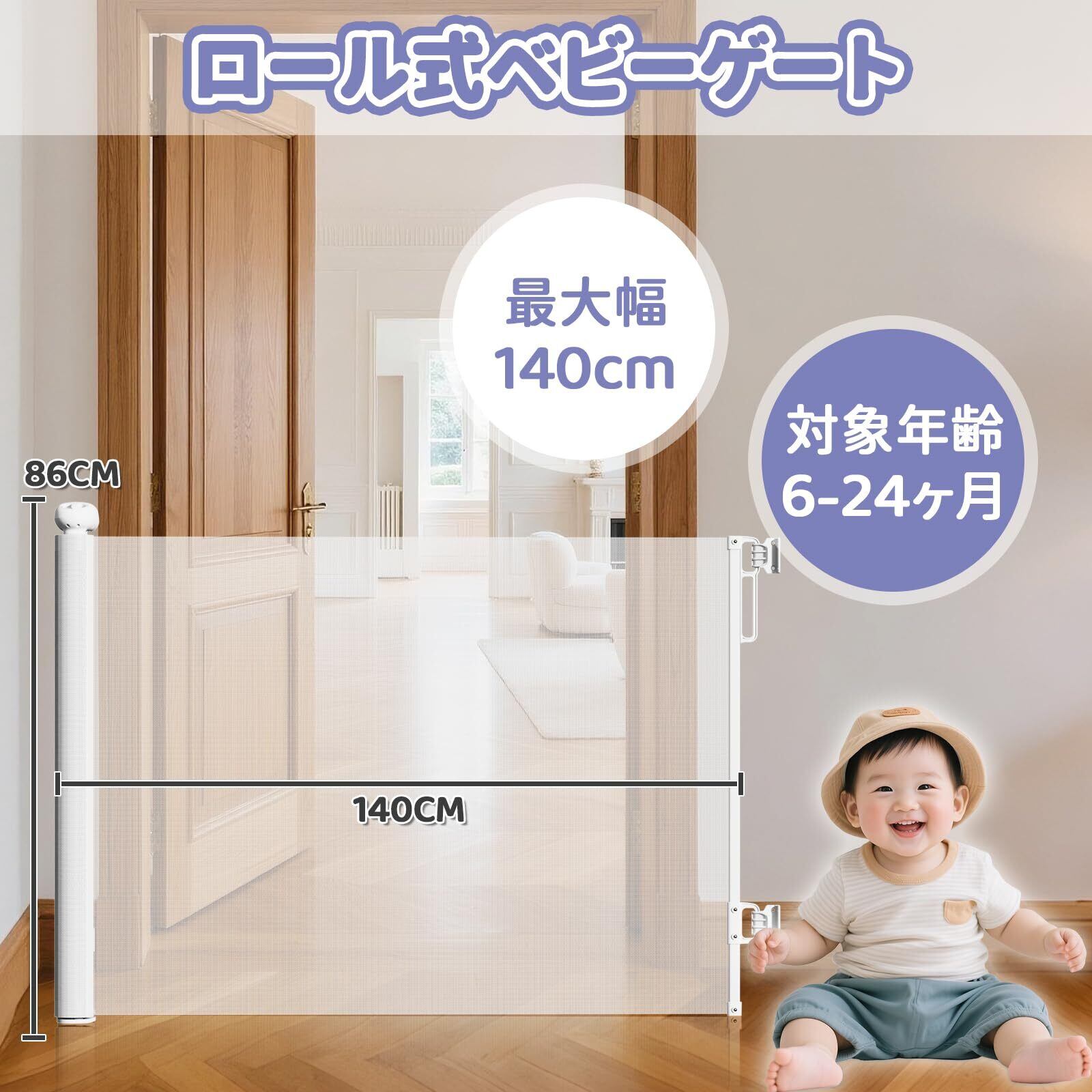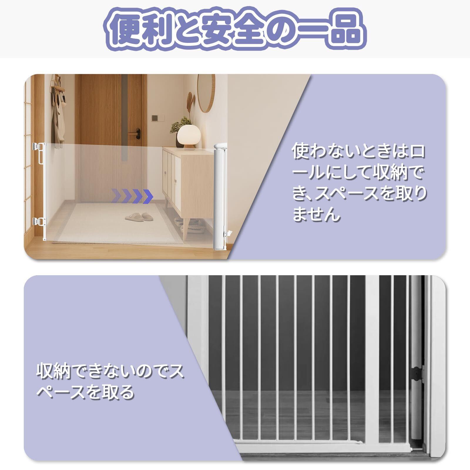 jidoutya ベビーゲート ロール式 階段 ベビーフェンス 幅140CM 巻き取り式 ソフト素材・傷つけない ペットゲート 穴あけ必要・しっかり固定 ネジ付 安全ロック 脫走防止 タイル・木製壁取付可能 赤ちゃん/ペット/猫/犬に適応