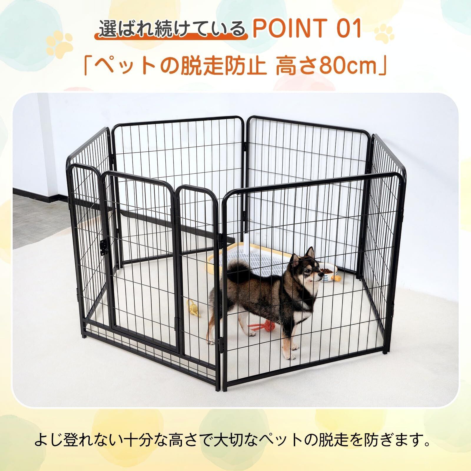 【2022最新】KIRATAKU 大型犬 サークル スチール製 ペットサークル 犬用サークル 犬用フェンス 犬 ケージ ペットケージ 大型 60/80/98CM 室内室外兼用 折り畳み式 組立簡単 複数連結可能 (ブラック, 高さ80CM, 8枚) | wakuwakuland