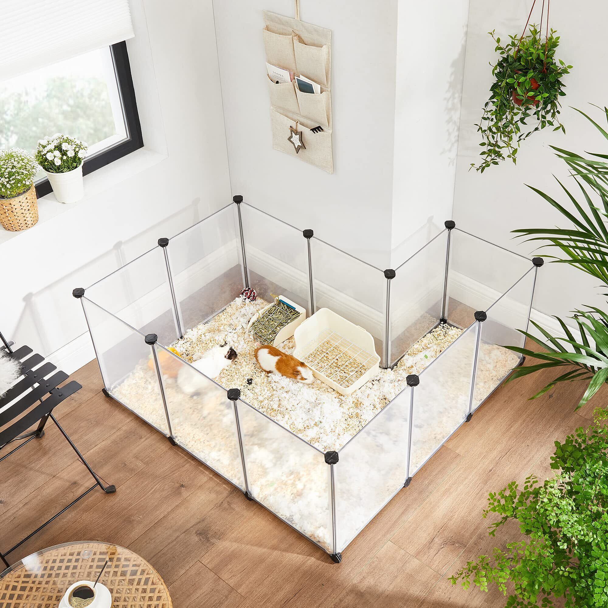 SONGMICS ペットフェンス ハムスターサークル 透明パネル20枚セット 底付き仕様 安定性良い 組立簡単 DIY可能 多用途 簡易フェンス LPC02W ホワイト