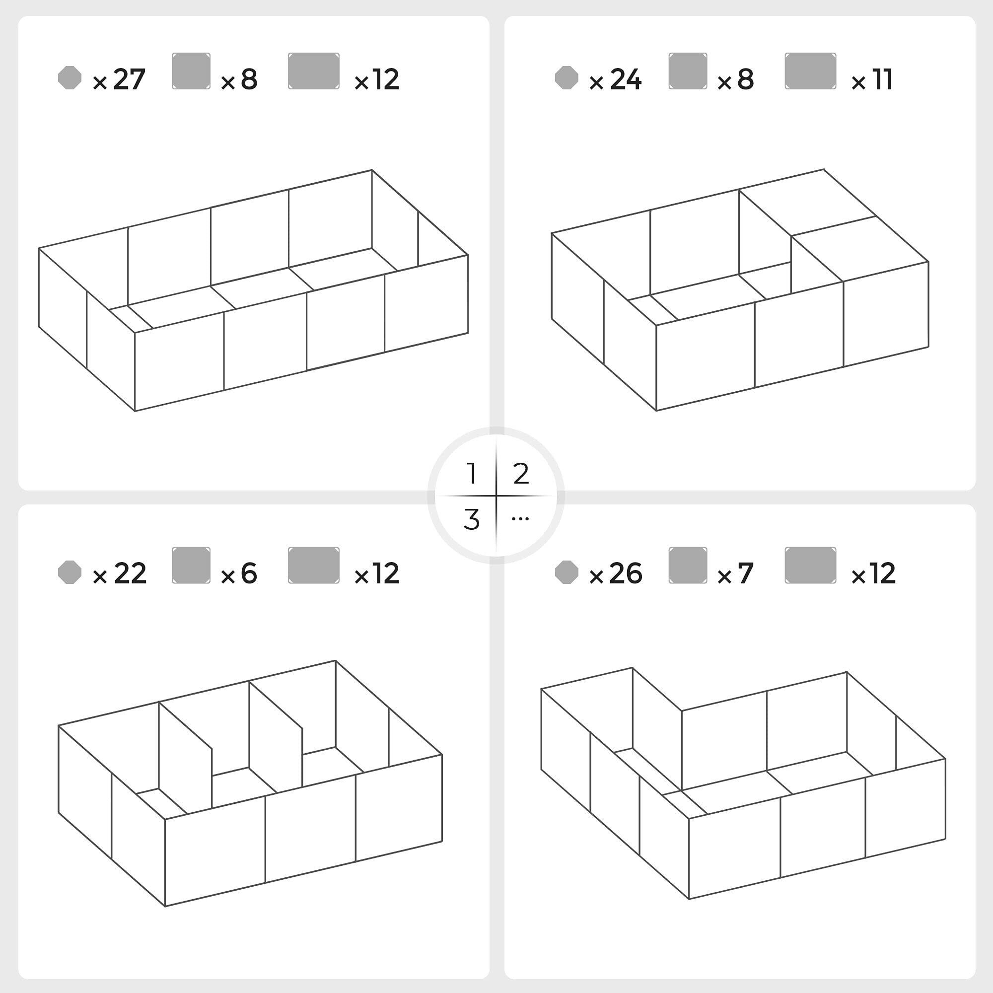 【レイアウト自由】嵌め込み式なので、ペットの大きさ、お部屋の広さ、スペースに合わせてお好みの形に組み立て可能。組み立て方によって、パーツが足りない場合は弊社までご連絡頂ければ、対応できますので、ご安心ください