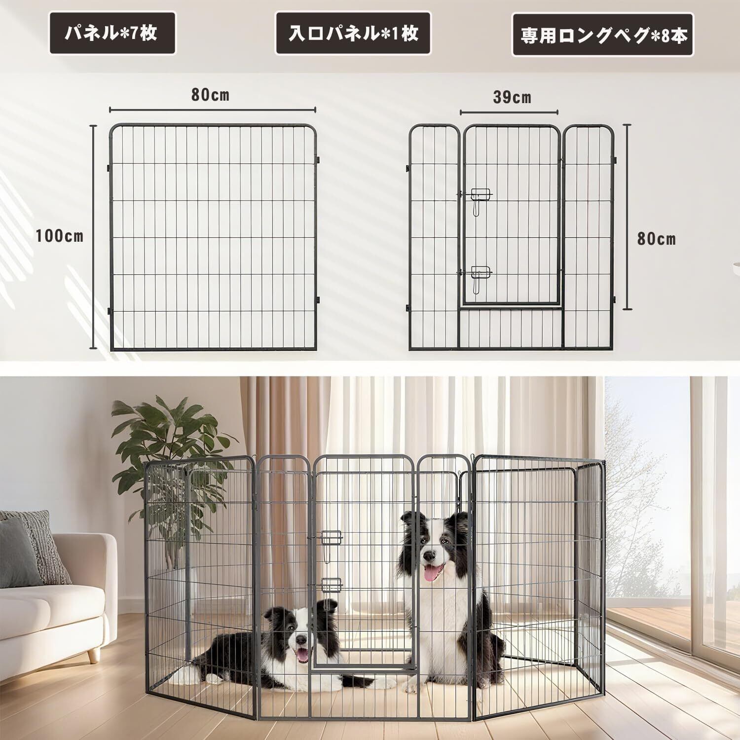 DUDULIFE ペットサークル 折りたたみ式 ペットフェンス 扉付き 形組み換え可能 室内外兼用 高さ 100cm パネル 8枚 大型犬・小動物用 全成長期対応 ドッグサークル (100*80cm-8枚)
