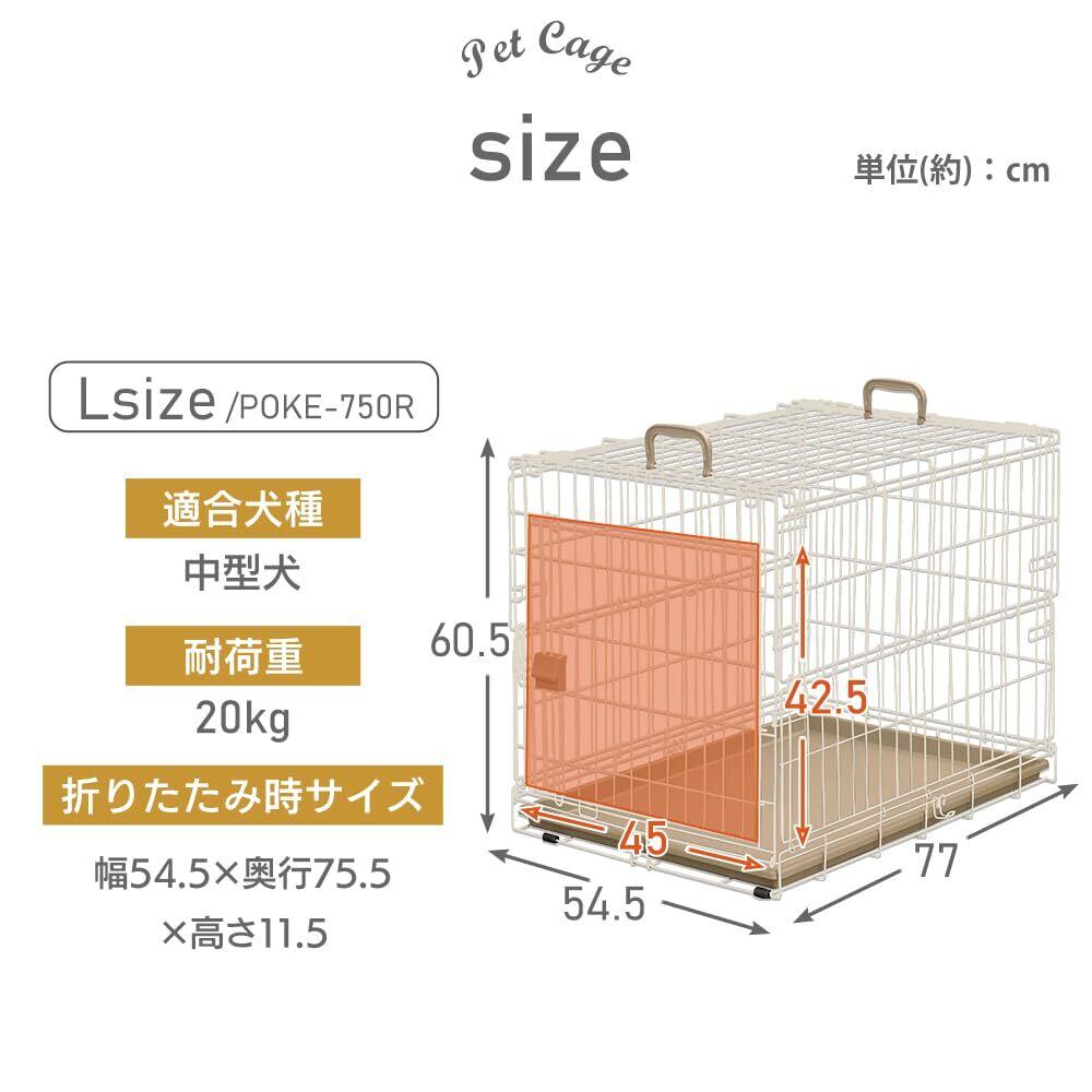 アイリスプラザ 折りたたみケージ 犬 猫 防災 ライトナチュラル 中型犬用 幅54.5×奥行77×高さ60.5cm POKE-750R