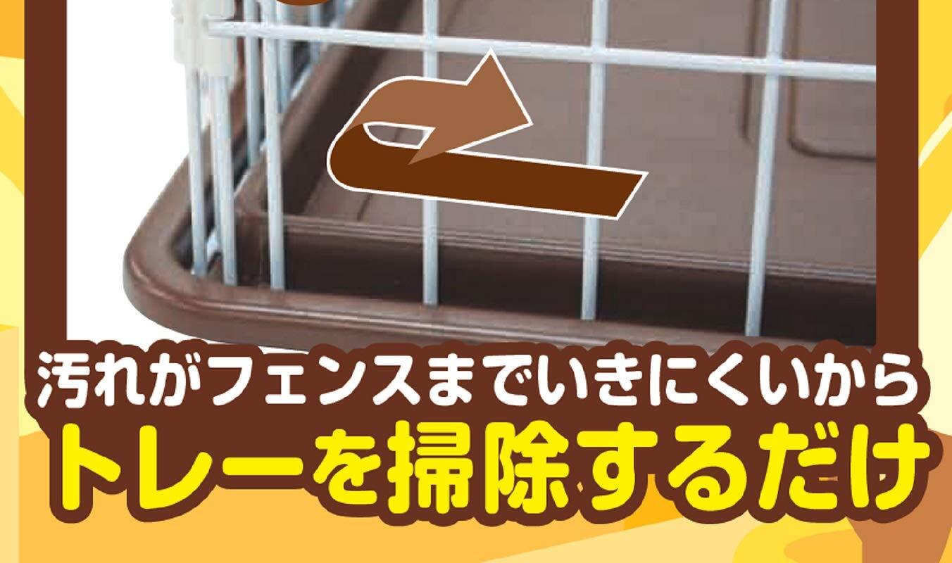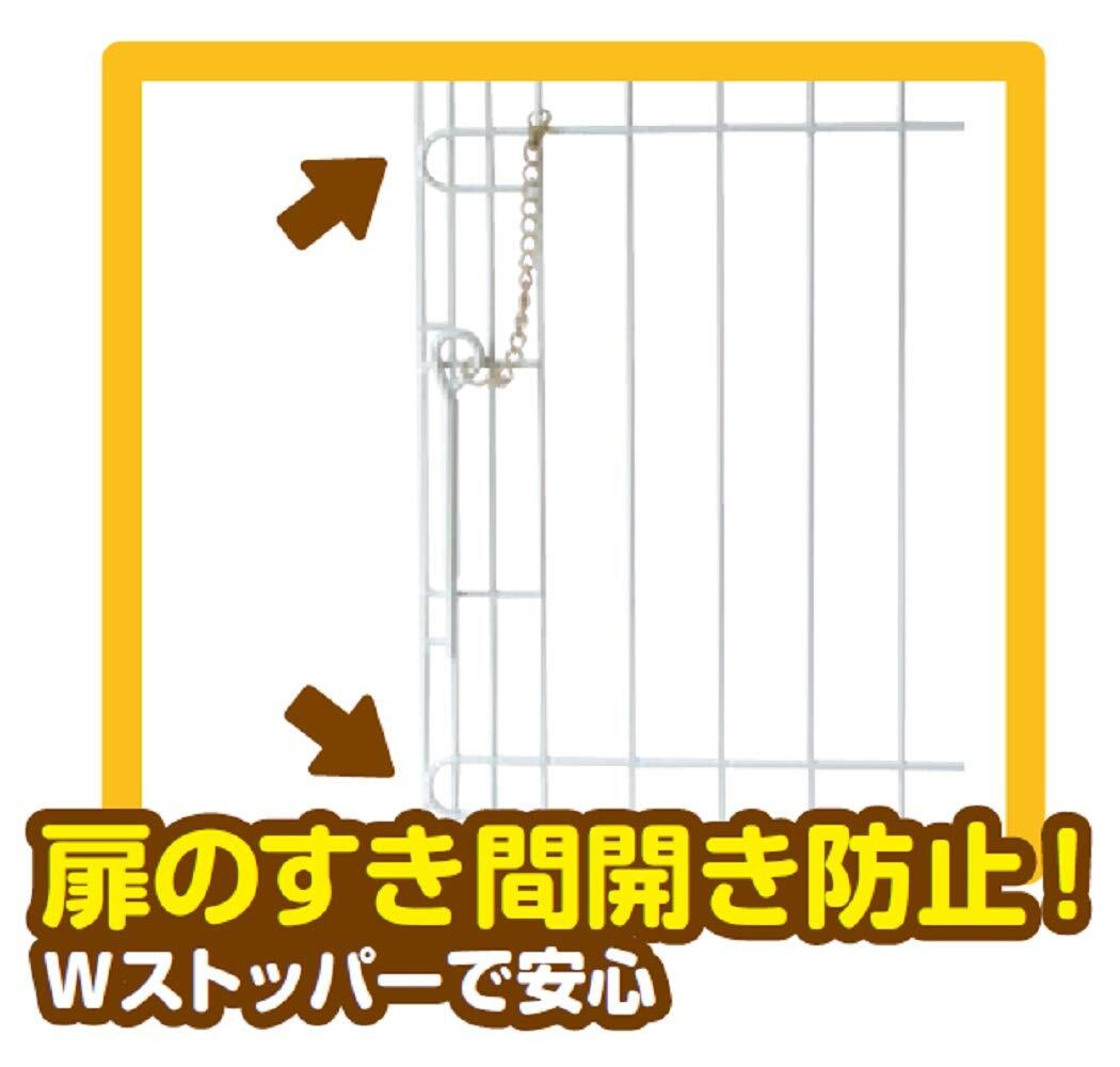 ワイドドアだから出し入れラクラク!お手入れもしやすい!さらにおしっこバリア機能付きです。ダブルストッパーでドアのすき間開きを防止。ワンちゃんの脱走を防止する天面フェンス付きでお留守番も安心です。