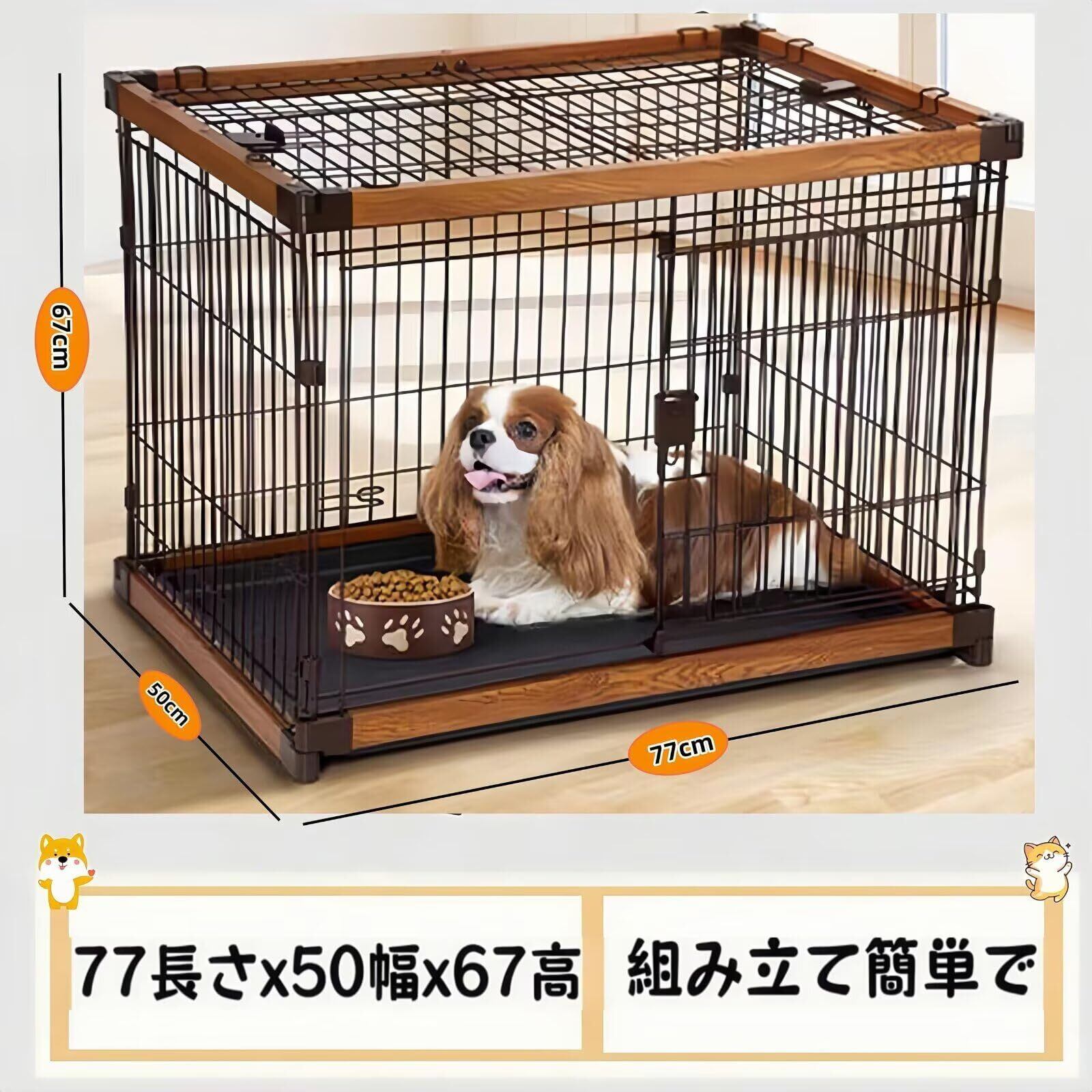 TUIYIDUO 犬ケージ ペットケージ 犬 サークル 76.5長さ x 55幅 x 60.5高さ cm 折りたたみ可能 屋根付き トレー付き 掃除簡単 適用小型/中型/大型犬 脱走防止 室内外兼用 日本語説明書付き