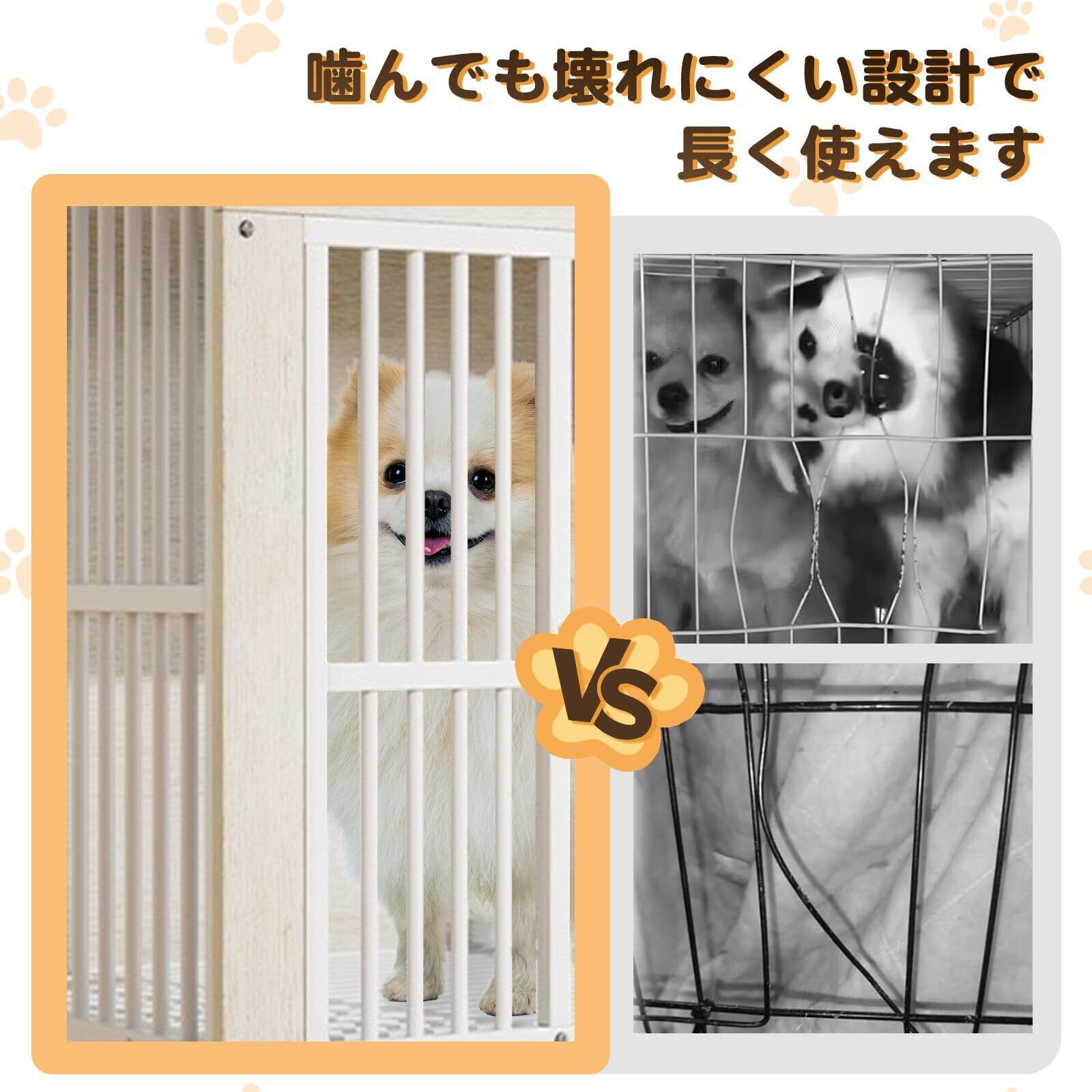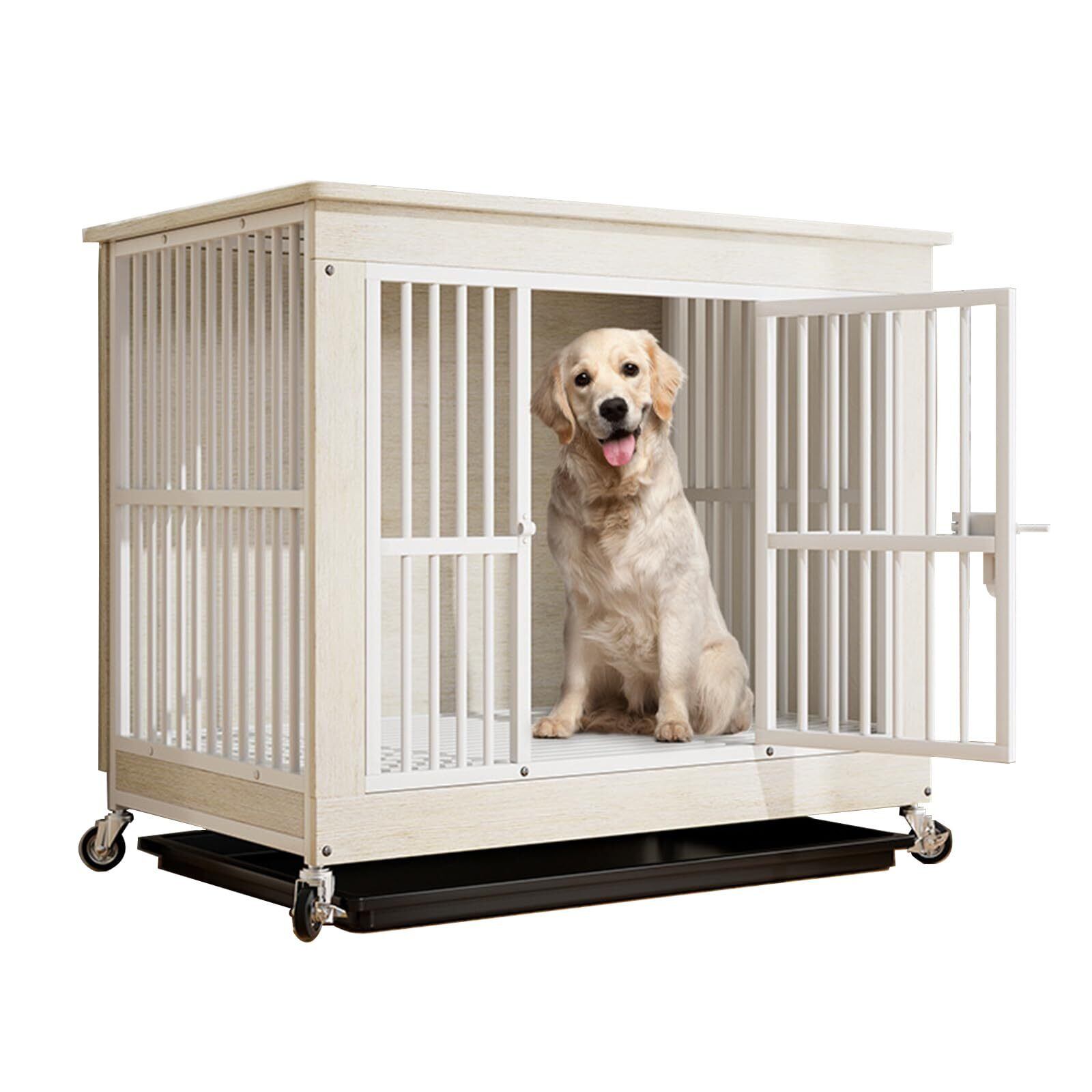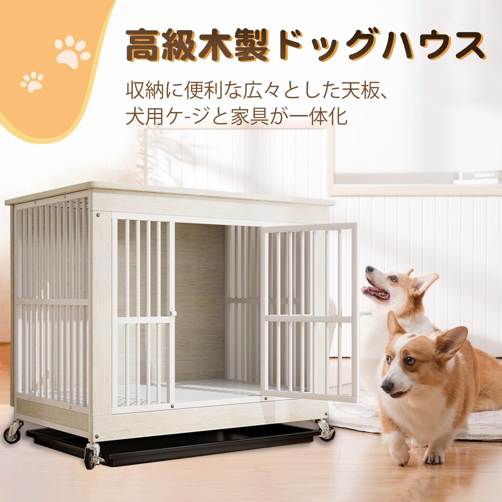 Fainyearn 犬ケージ 小型犬 屋根付き ウッディサークル 犬小屋 中型犬 キャスター付き 木製 トレー付き 幅 80×奥行52×高さ77cm(ホワイト, S)