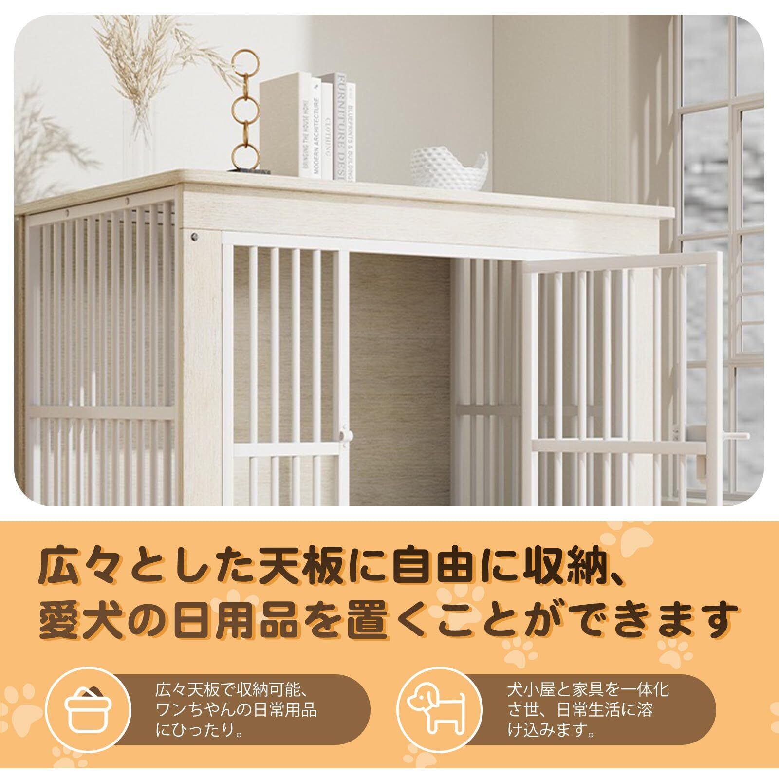 【実用的な屋根付き天板】天板は屋根として機能し、約 100kg の耐荷重が可能です。ワンちゃんのお世話用品や小物を置けます。地震時は落下物からペットを守り、温かみのある木目調やグレーのデザインがどんなインテリアにもマッチし、家具としても使えます。