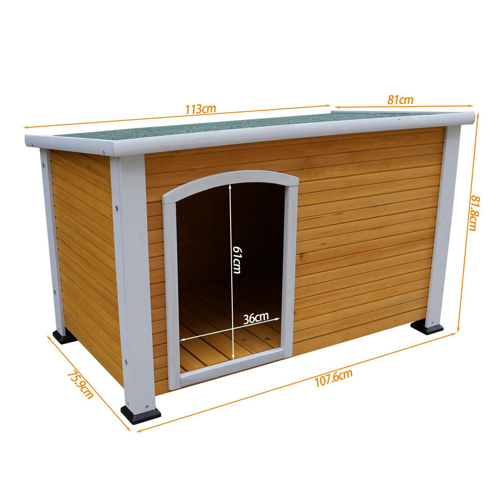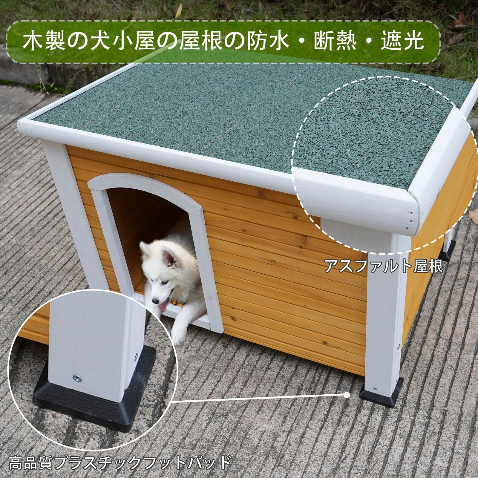 屋外用 木製ドッグハウス 防水グリーン屋根 ホワイトフレーム ナチュラルウッド (ナチュラルウッド, L)犬小屋 大型犬 木造犬小屋 屋外耐久性 ペットハウス 天然木 杉 犬舎 猫舎 木製ゲージ 小型 中型 大型犬 おしゃれ 屋内 屋外 耐重 通気性 防风 防雨 防寒 雨よけ 野外猫 野良猫 ハウス 避難所 簡単 組み立て 四季通用