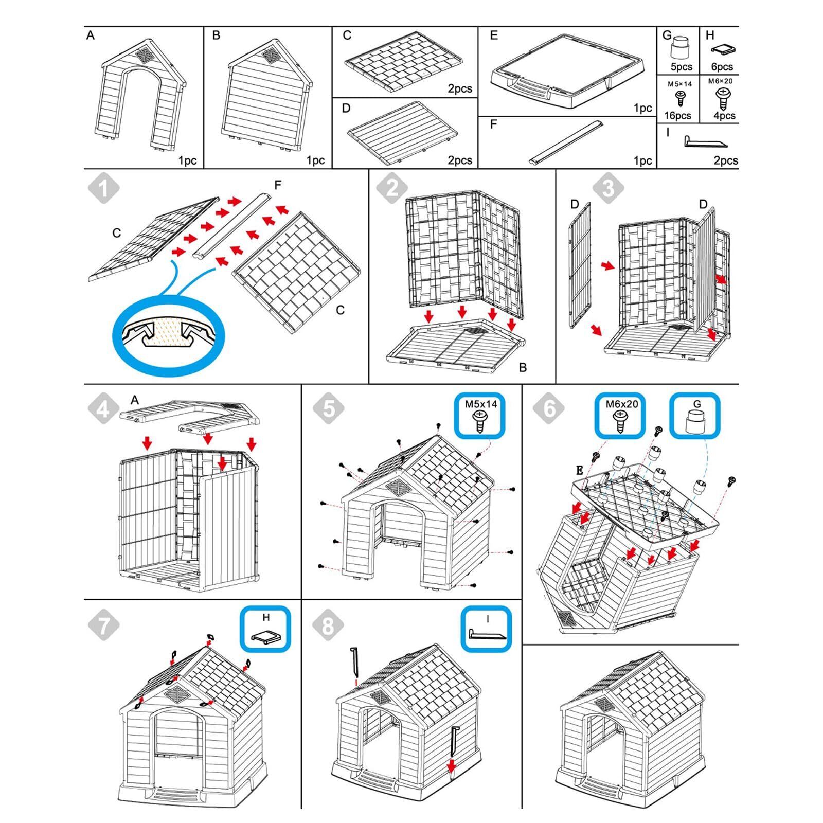 LIBERAL COMMUNE 犬小屋 中小型犬用 犬舎 組立式 ペットハウス プラスチック製 防風 防雨 通気性 換気 さびない 組立簡単 洗えるド 家庭/テラス/裏庭/室内/屋外用