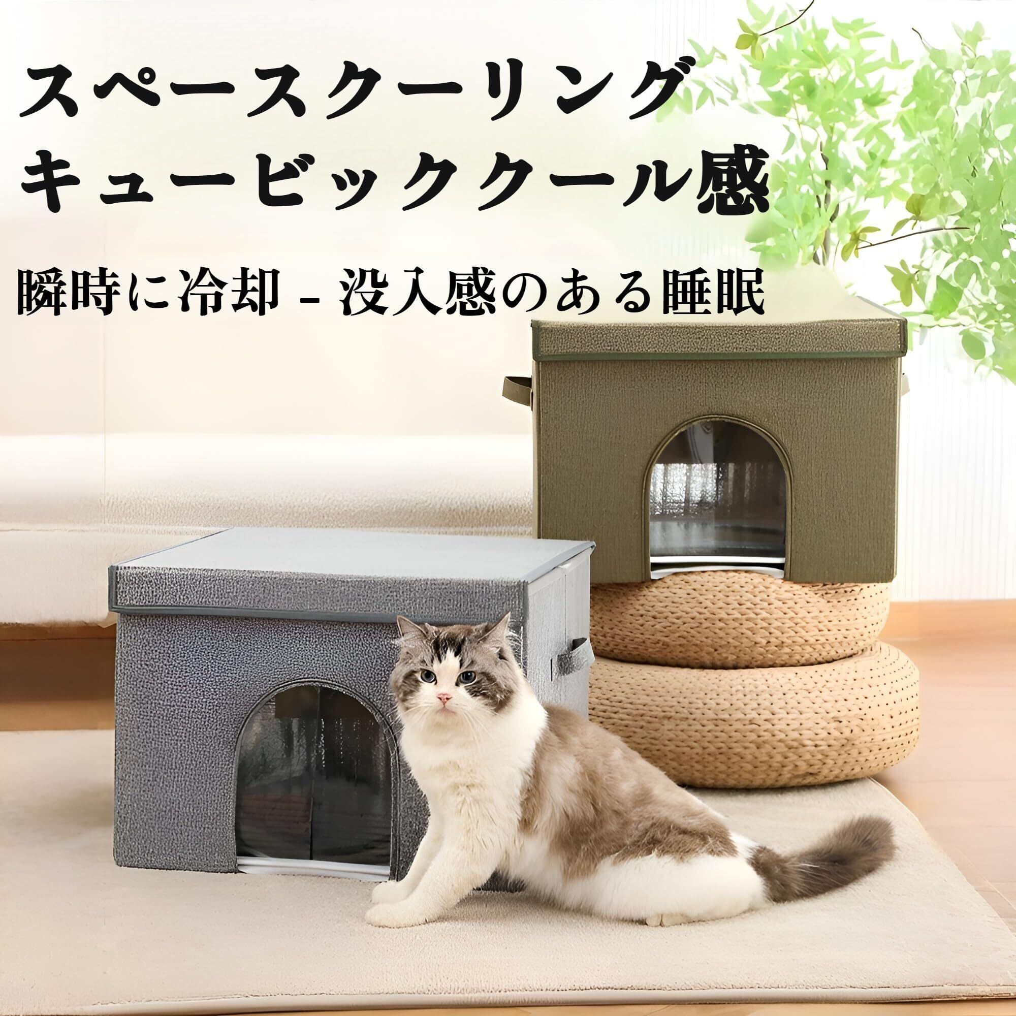 【在庫処分】[GIIPET]ペット冷却ハウス 夏用 ひんやり冷感 猫ハウス 犬小屋 8kg以内中·小型犬用 ペットひんやりマット 360°全方位冷却 熱中症・暑さ対策 接触涼感 耐用性 防水 折り畳める 冷えマット 繰り返し利用可能 屋外、屋内用 (グレー, 50*39*35.5cm) | wakuwakuland