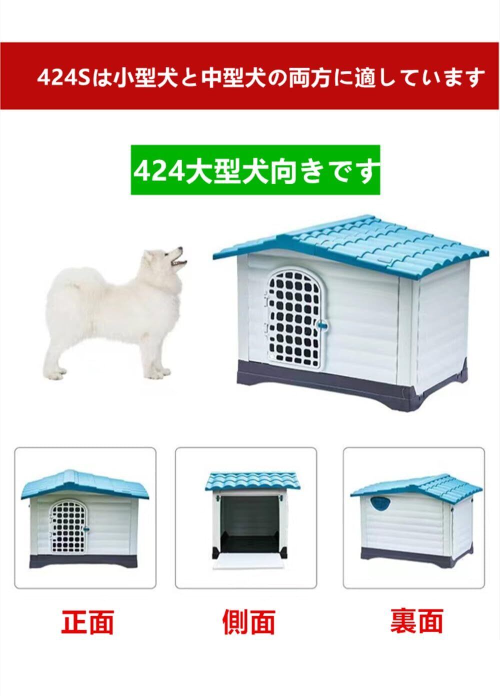 犬小屋 大型犬 プラスチック 犬小屋 屋外用 中型犬 断熱 屋外用 小型犬 犬小屋 室内 屋外 夏用 涼しい 犬舎 夏用冬用 プラスチック 犬小屋 ペットハウス 鉄扉付き 猫ハウス 通気性 防水素材 さびない 組立簡単 水洗いOK 四季通用 (A, S)