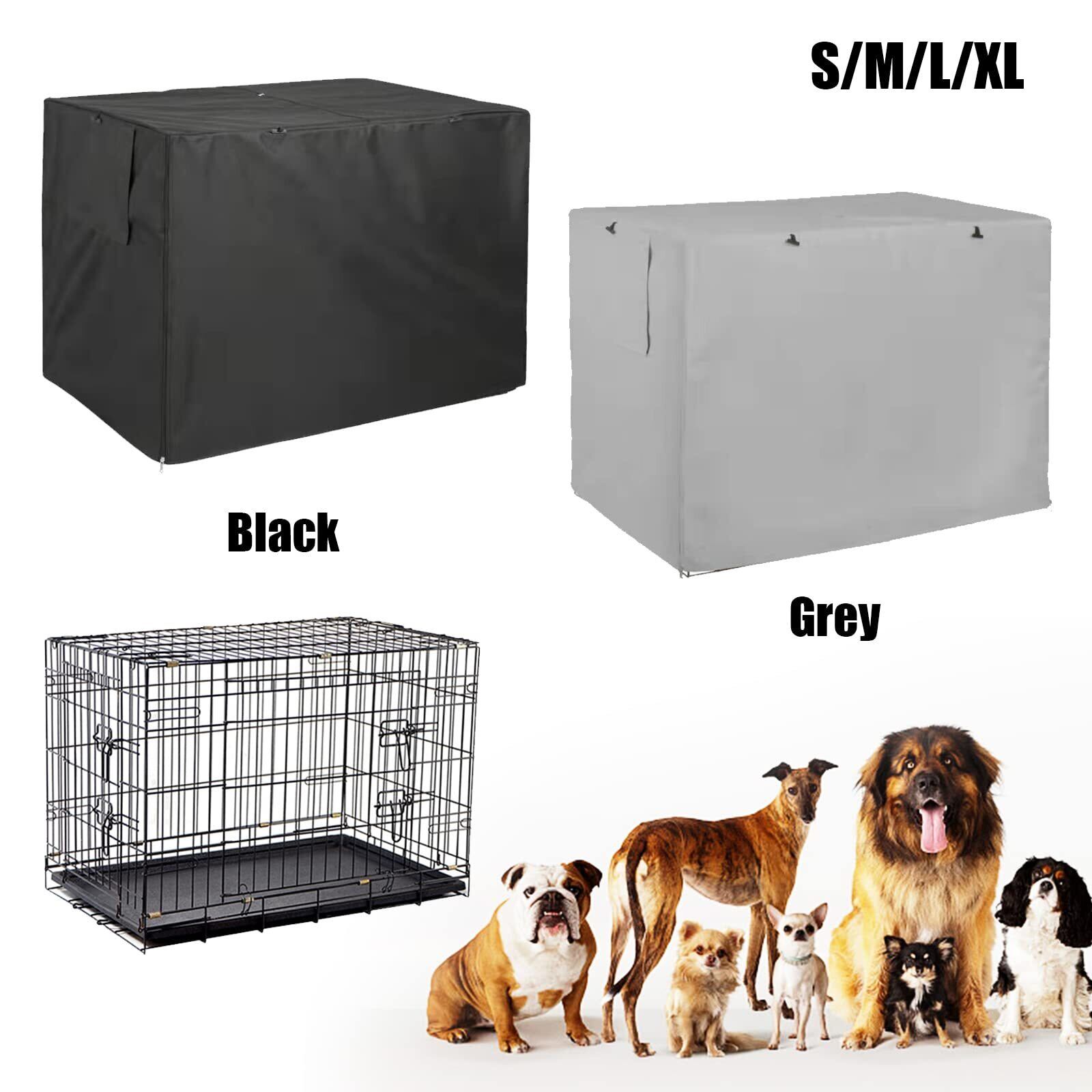 HARUMAKI 犬のケージカバー 犬猫用 犬用 ペットサークルカバー サイズ選択可能 ブラック/グレー 犬用ケージカバー 防寒 夏 通気 水洗い可能 防水 落ち着ける空間作り ファスナー付き 取り付け簡単 収納便利 (ブラック, Mサイズ)
