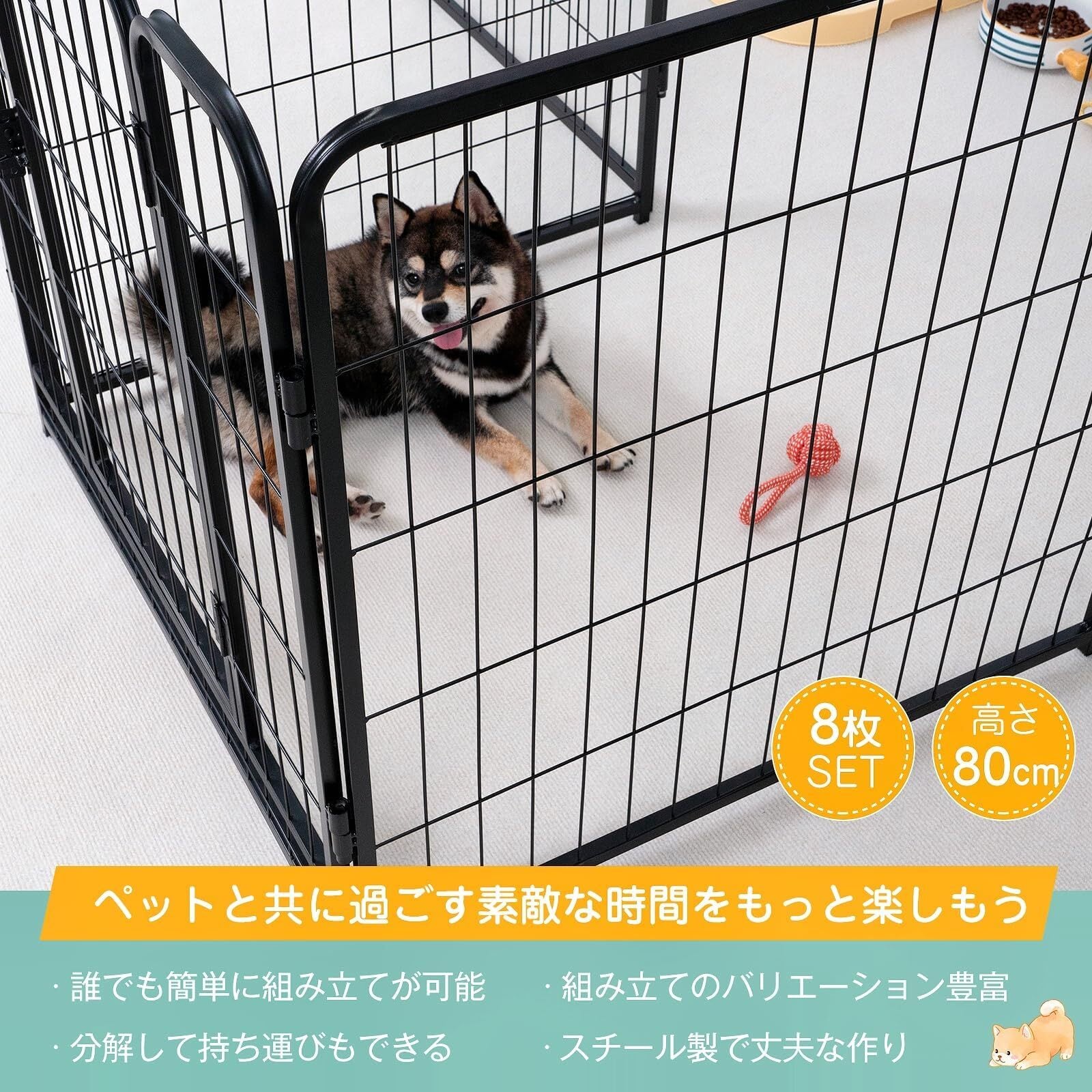 【在庫セール】KIRATAKU 犬 ゲージ 大型犬 サークル 60/80/98CM ペットサークル サークル ペット ケージ 犬用サークル ペットフェンス 犬サークル 中型犬 スチール製 コンパクト 組み立て簡単 室内室外兼用 (ブラック, 高さ80cm, 8枚) | wakuwakuland