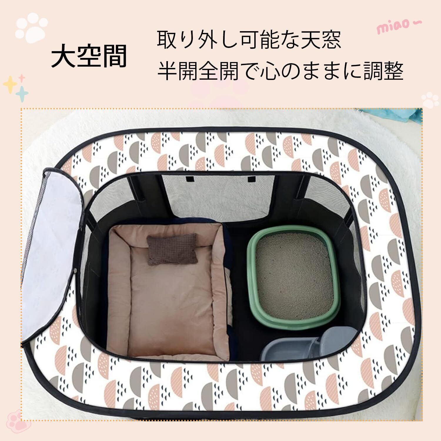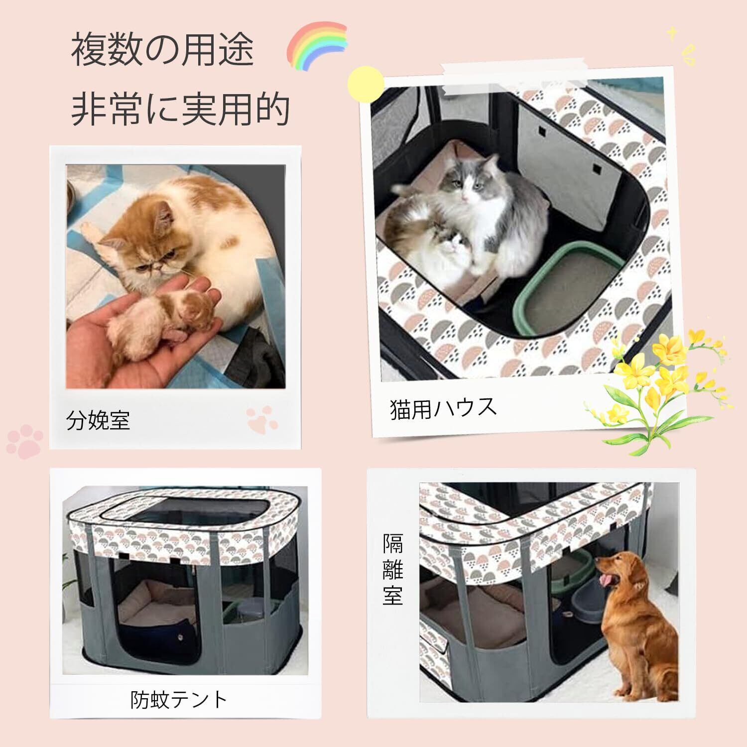 【猫 ケージ 折り畳み】犬、猫、ウサギ、ハムスターにも適しています。 ペットの分娩室、隔離室、ペットの巣、遊びスペースとしても使用できます。十分な室内スペースがあり、ペットは遊んだり休んだりするのに最適な快適でリラックスした環境を楽しむことができます。