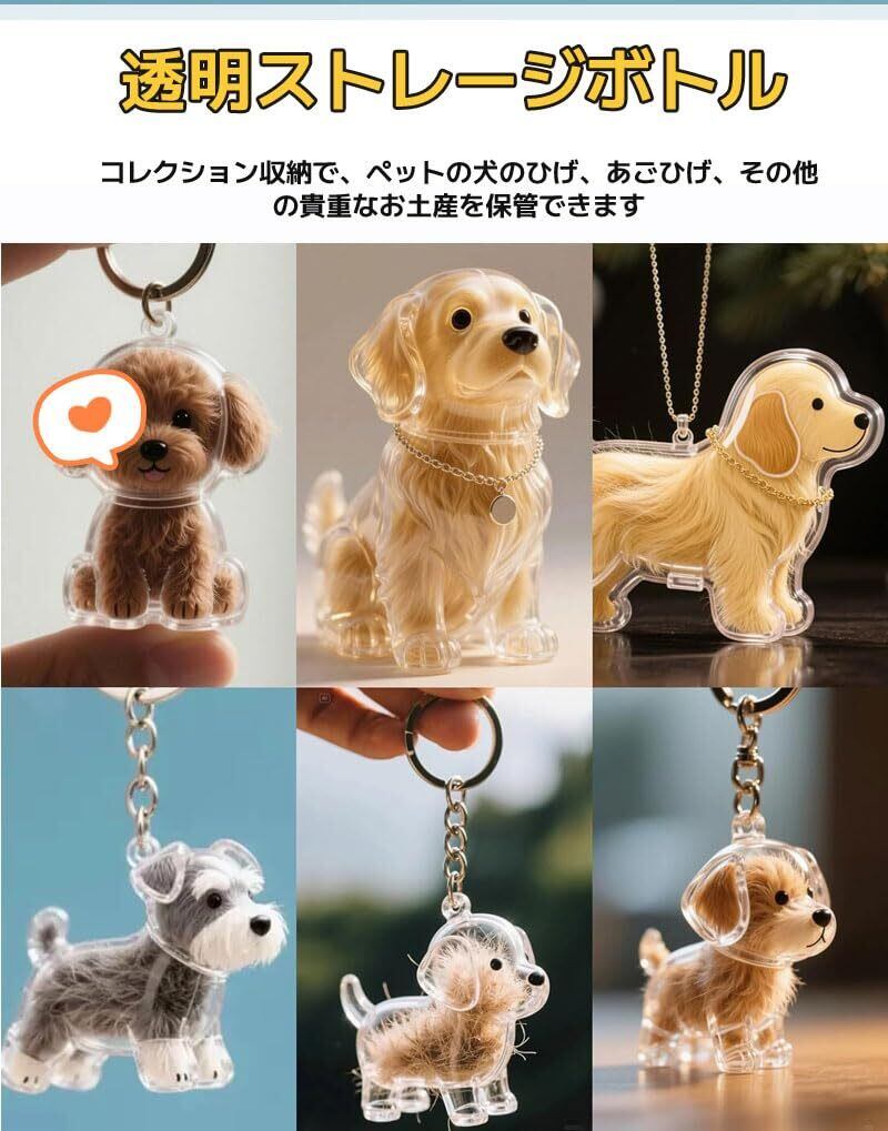 【数量限定】Olesew 犬の毛 キーホルダー ペット 遺毛 ケース 透明 ペット 遺毛入れ ペットメモリアルボトル 犬の毛収納ボトル 犬のキーホルダー 毛を保管するボトル かわいい ペットひげ・抜け毛収納 携帯 持ち歩き 犬 メモリアルグッズ (犬-B) | wakuwakuland