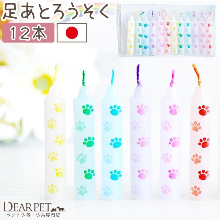 足あと ろうそく ペット ミニ寸 ローソク 物 メモリアルグッズ 肉球 ミニろうそく ペット仏具 ペット供養 お悔み 犬 猫 お供え キャンドル 虹色 ペットロス 虹の橋のたもと (12本)