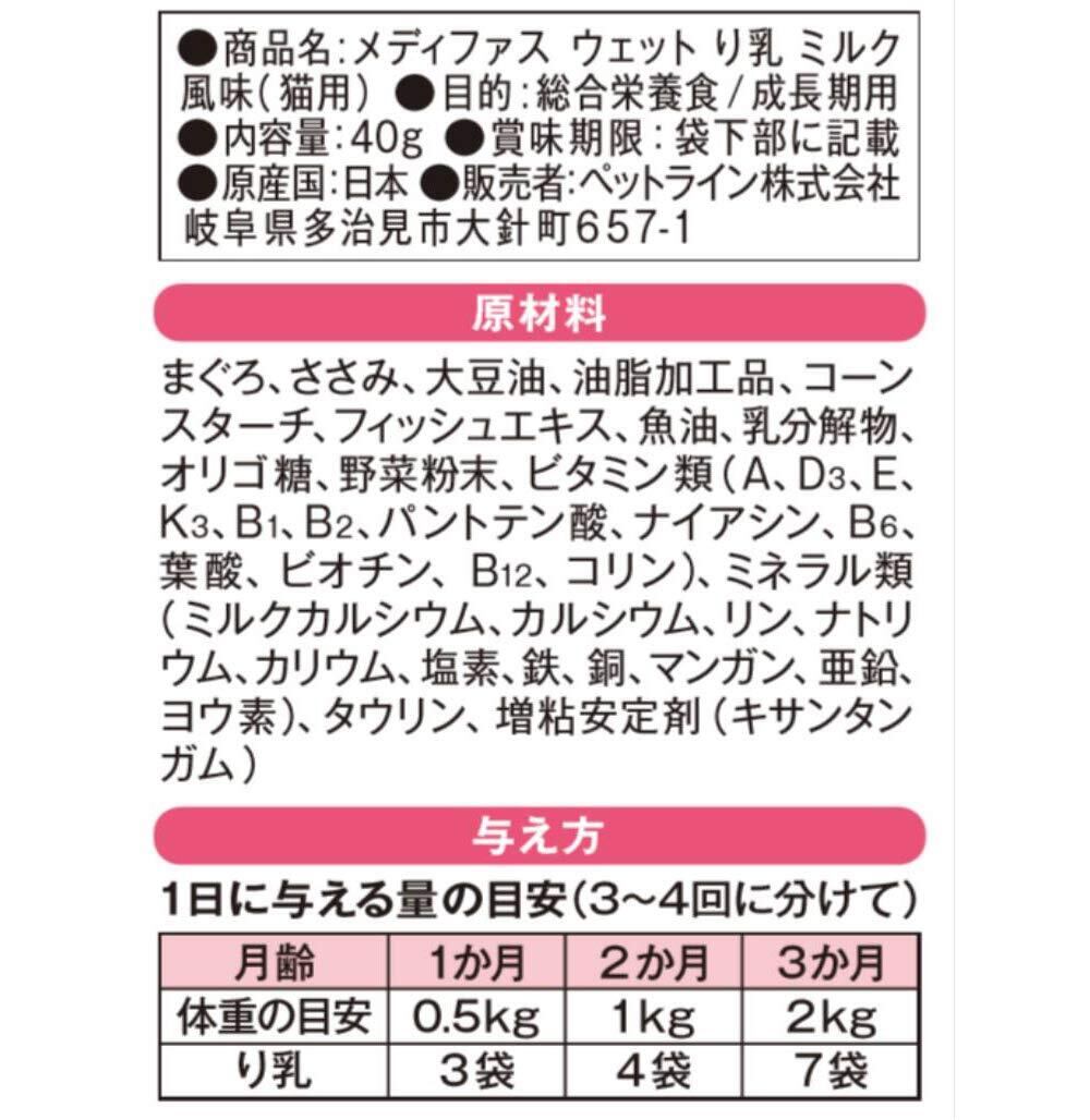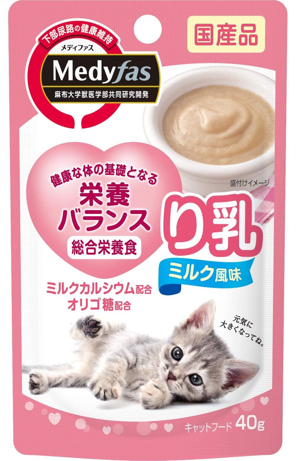 メディファス ウェット キャットフード 子ねこ り乳 ミルク風味 【総合栄養食/下部尿路/国産】 40gx12 (まとめ買い)