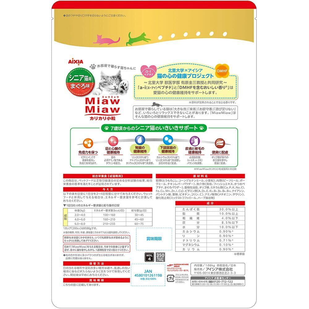 ミャウミャウ (MiawMiaw) カリカリ 小粒 腎臓と下部尿路の健康維持 1.08kg シニア猫用 まぐろ味 キャットフード ドライフード