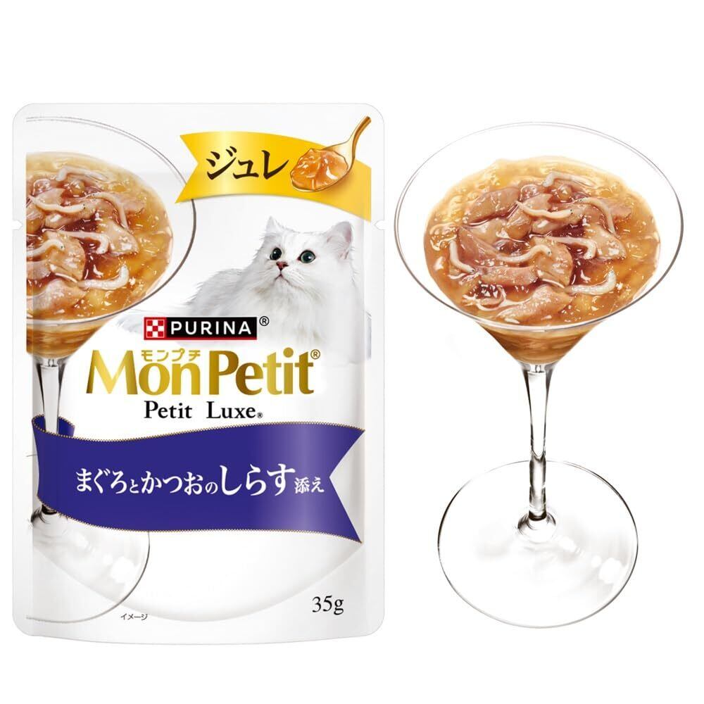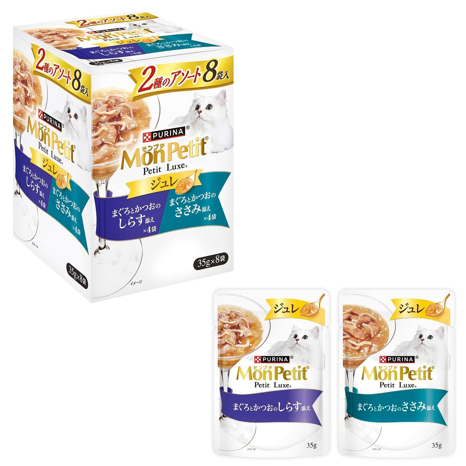 【在庫処分】モンプチ プチリュクスパウチ ジュレ 2種のアソート まぐろとかつお しらす添え&ささみ添え 8袋入