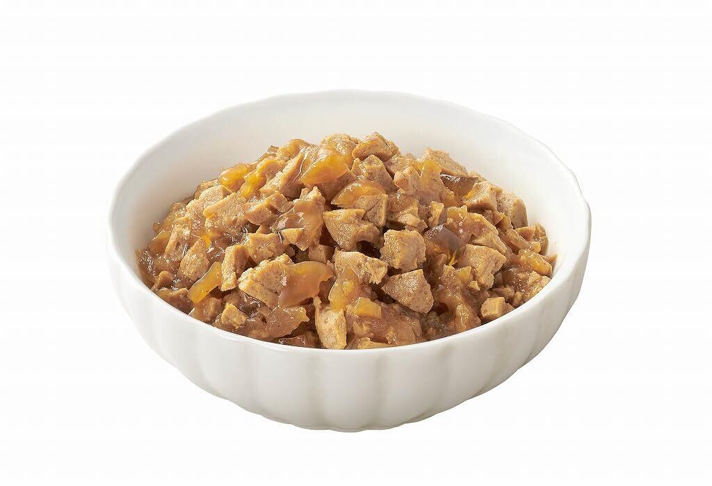 お肉のおいしさが詰まった素材をうまみたっぷりのゼリーで包み込んだ、お肉ベースの総合栄養食。