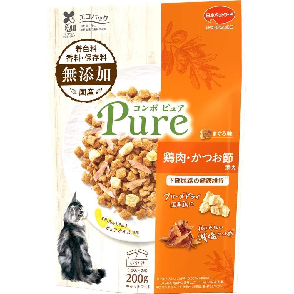 コンボ キャットフード ピュア まぐろ味・鶏肉・かつお節添え 200g 【無添加素材使用】 【国産】 【小分包装】