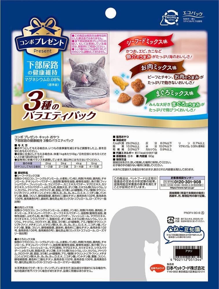 コンボプレゼント キャットおやつ 下部尿路の健康維持 3種のバラエティパック 90g 【かりかりドライ】 【国産】 【小分包装】