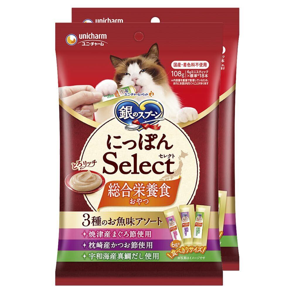 【新着商品】【総合栄養食】銀のスプーン にっぽんSelect とろリッチ 3種のお魚味アソート 108g×2 [猫用おやつ]【国産/無着色/健康ケア/食べきりサイズ/まとめ買い】 | wakuwakuland