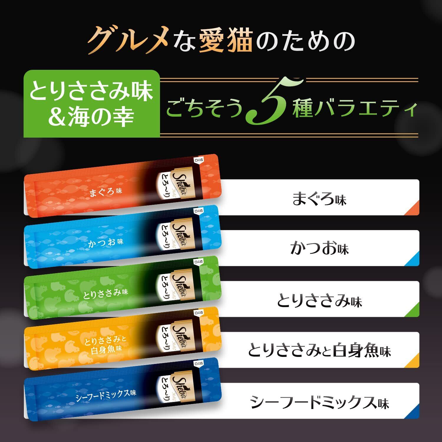 【特価セール】シーバ (Sheba) シーバメルティ 猫用おやつ とろ~り 成猫用 とりささみ味&海の幸ごちそう5種バラエティ 12g×55本入【大容量】【厳選素材】【限定】 | wakuwakuland