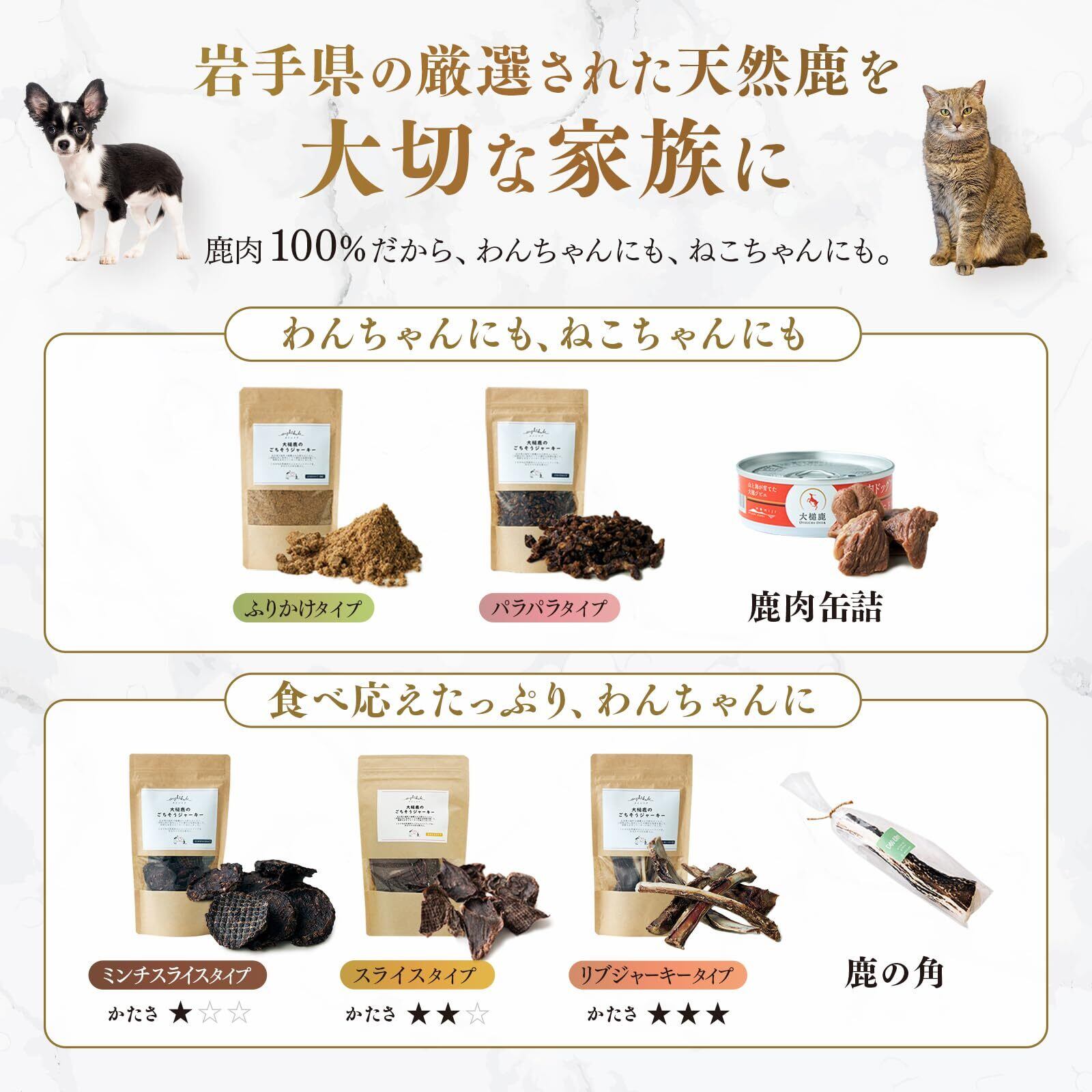 内容量:1袋/20g 原材料:大槌鹿 添加物:不使用 保存方法:常温保存 賞味期限:容器包装上に記載