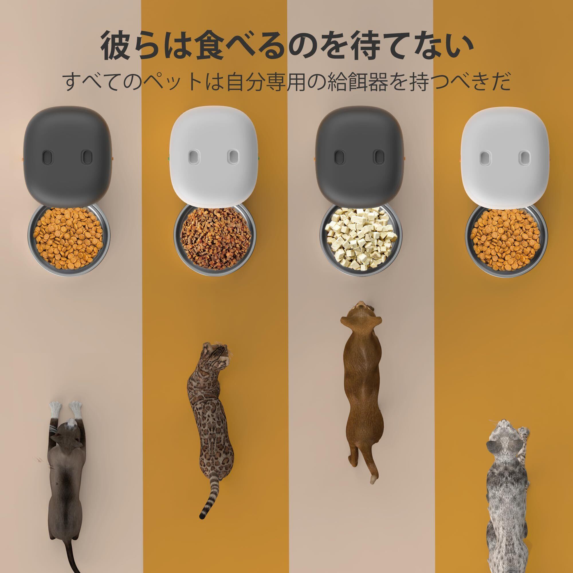【2頭以上のペットに最適】複数の自動給餌器を自由に配置でき、各ペット専用の給餌器を提供します。これにより、餌の取り合いを減らし、ペットそれぞれに適切な量の食事を与えられます。食事のタイミングも個別に設定でき、ストレスのない健康的な食生活をサポートします。さらに、複数ペットの世話を効率化できるため、忙しい飼い主にも最適です。多頭飼いのご家庭にもぴったりです。