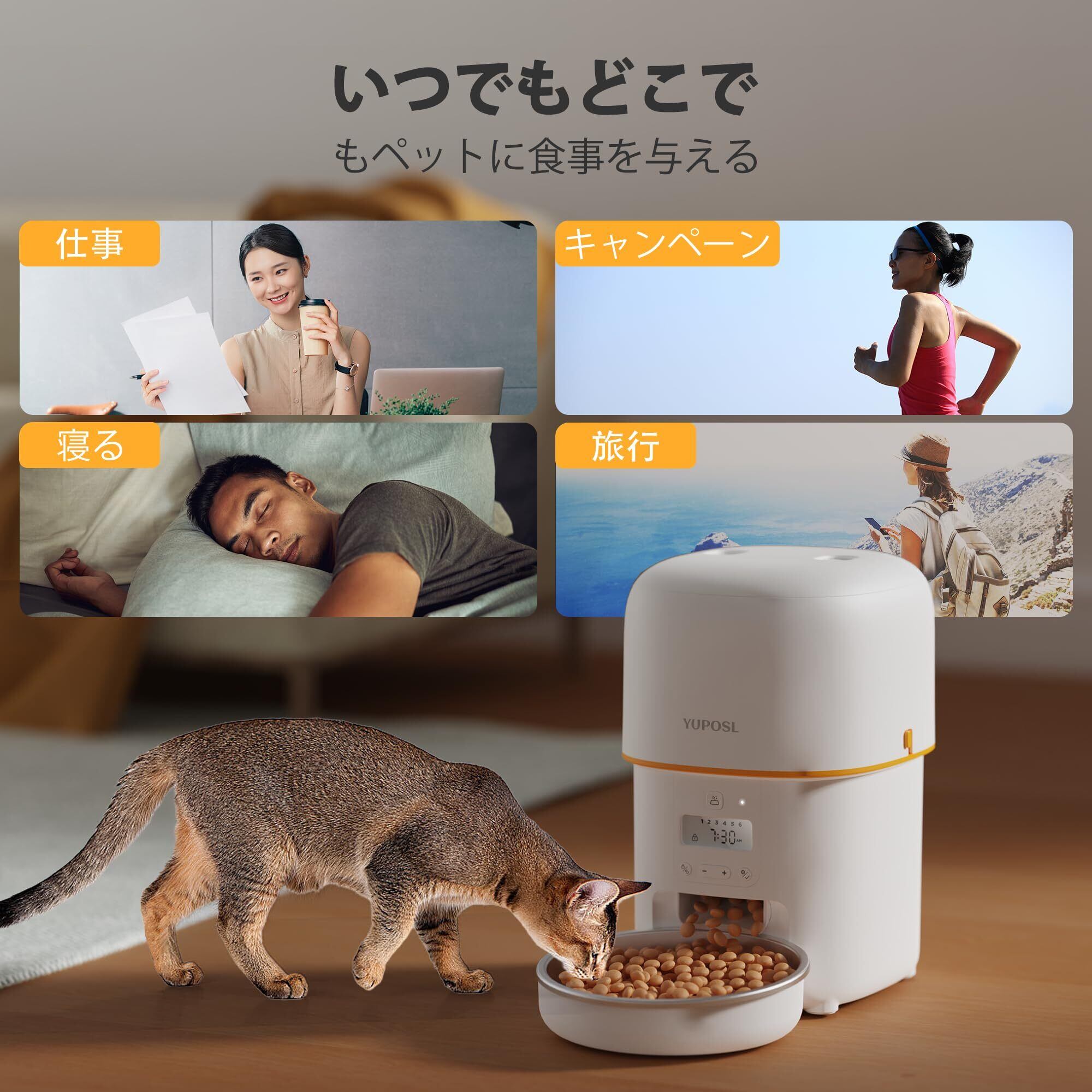 Yuposl 自動給餌器 猫 中小型犬用 1日6食 定時定量 2L容量 自動餌やり機 タイマー式 餌の鮮度保持 2WAY給電 無制限置き場所 水洗い可能 ステンレス製ボウル 手動給餌 設定・お手入れ簡単 ホワイト