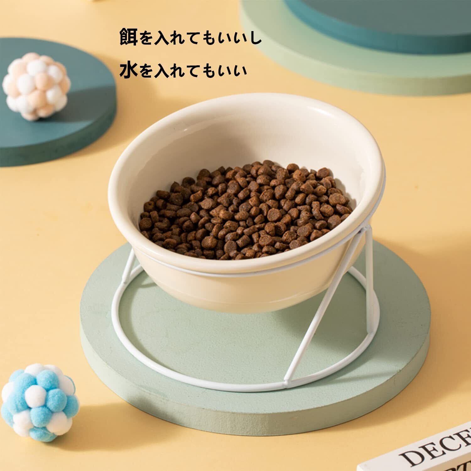 INUGOYA 猫 食器 陶器 15度の傾斜 食べやすい 頸椎を保護する 犬 餌入れ 水入れ ペット食器 猫 犬 取り外し式 ペットウォーターボトル 洗いやすい 猫 えさ 皿 (ベージュ) (ライトグリーン)