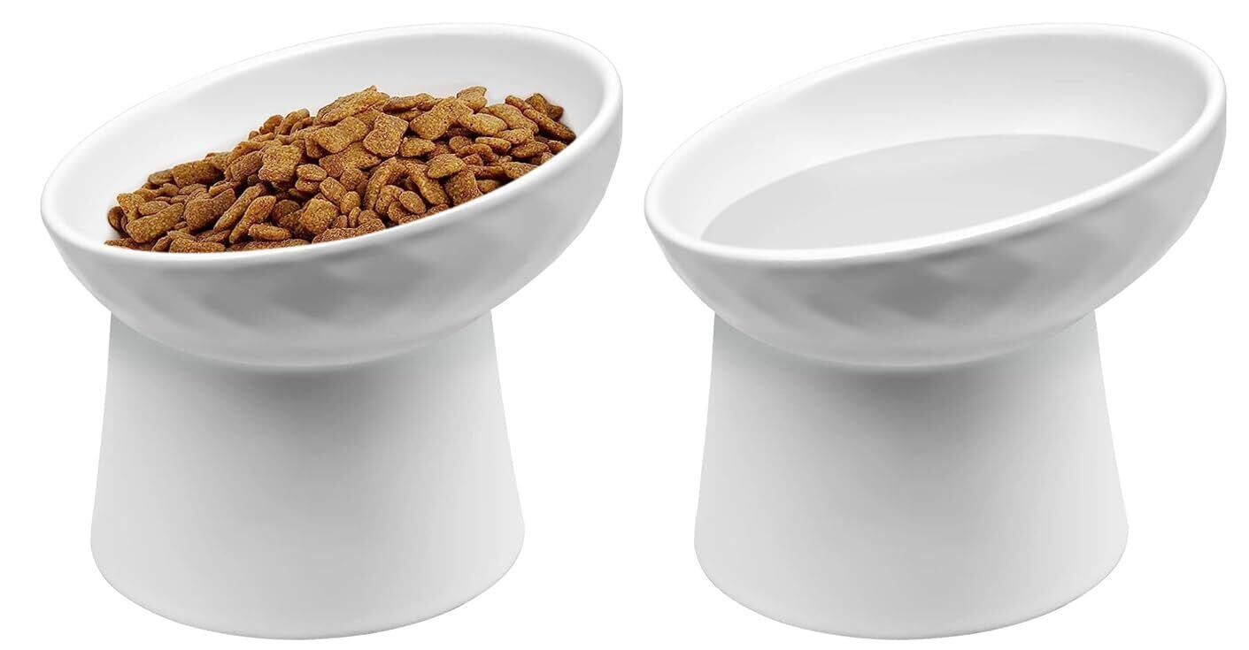 UYTON 猫 フードボウル 陶器製 猫用フードボウル 15度の傾斜 首や腰の負担を軽減し猫 皿 食器 猫 餌入れ 水飲み用 犬猫兼用食器 吐き戻し防止 洗いやすい 食器洗浄機 対応