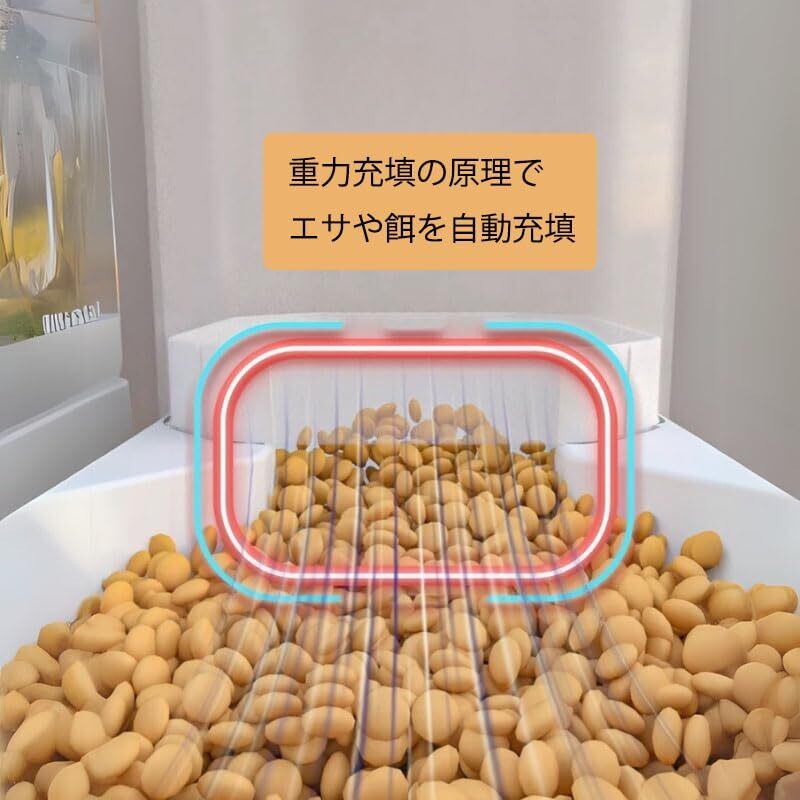 ペット重力充填の原理でエサや餌を自動充填。新鮮な食べ物を確保できる。ペットが食べるすべての穀物が新鮮です。