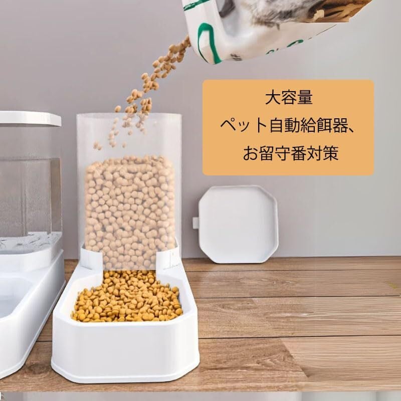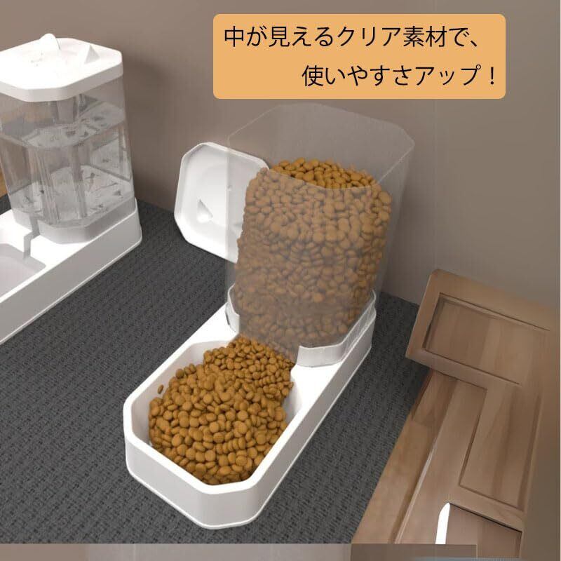 【特価セール】【全部洗える】Yuni Muni 自動給餌器 猫 自動給水器 セット 【衛生的 透明 大容量 猫犬用 小動物用 犬】ペット 用品 (白) (餌1.5kg 水3.3L) | wakuwakuland
