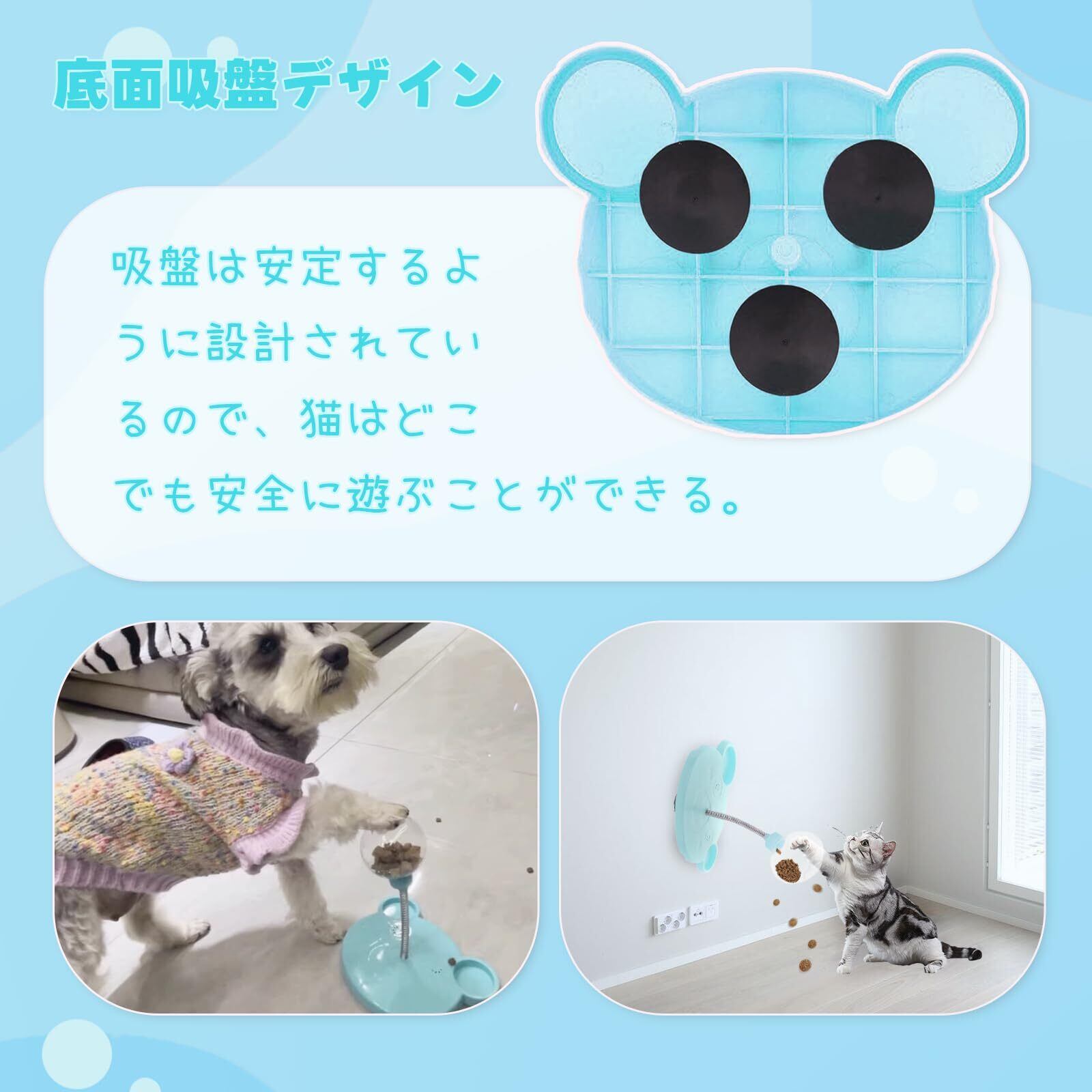 吸盤式の安定吸着デザインにより、どんな場所にでも簡単に移動でき、安心して遊ばせることができる 人気のネコ おもちゃ です