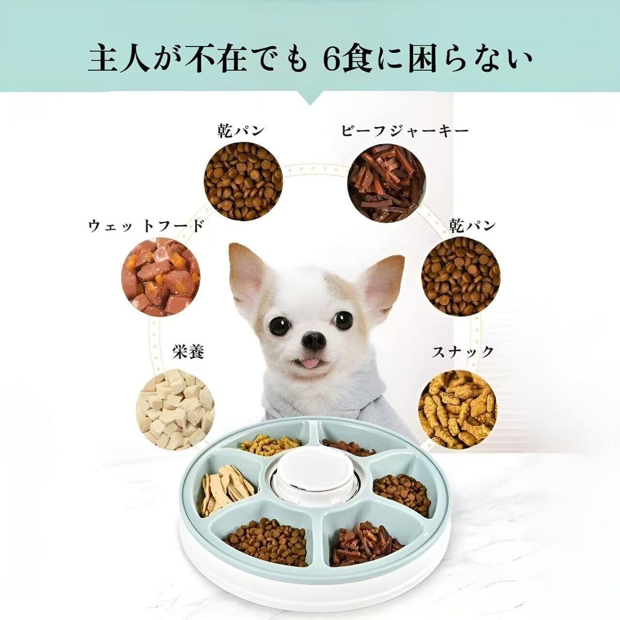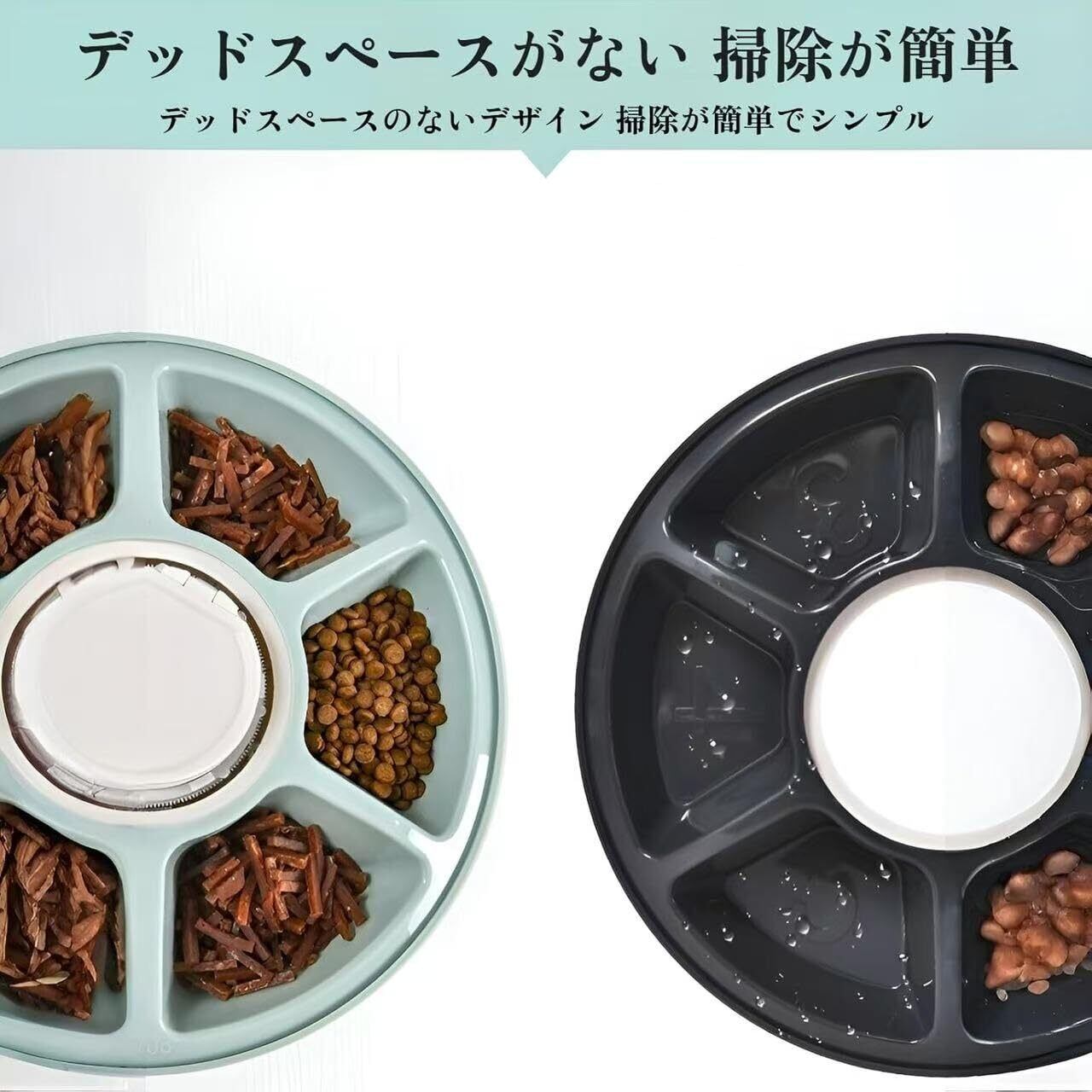 ドライフード、ウェットフード、スナック用の 6 つの独立したコンパートメントにより、多様で個別の食事が可能になります。