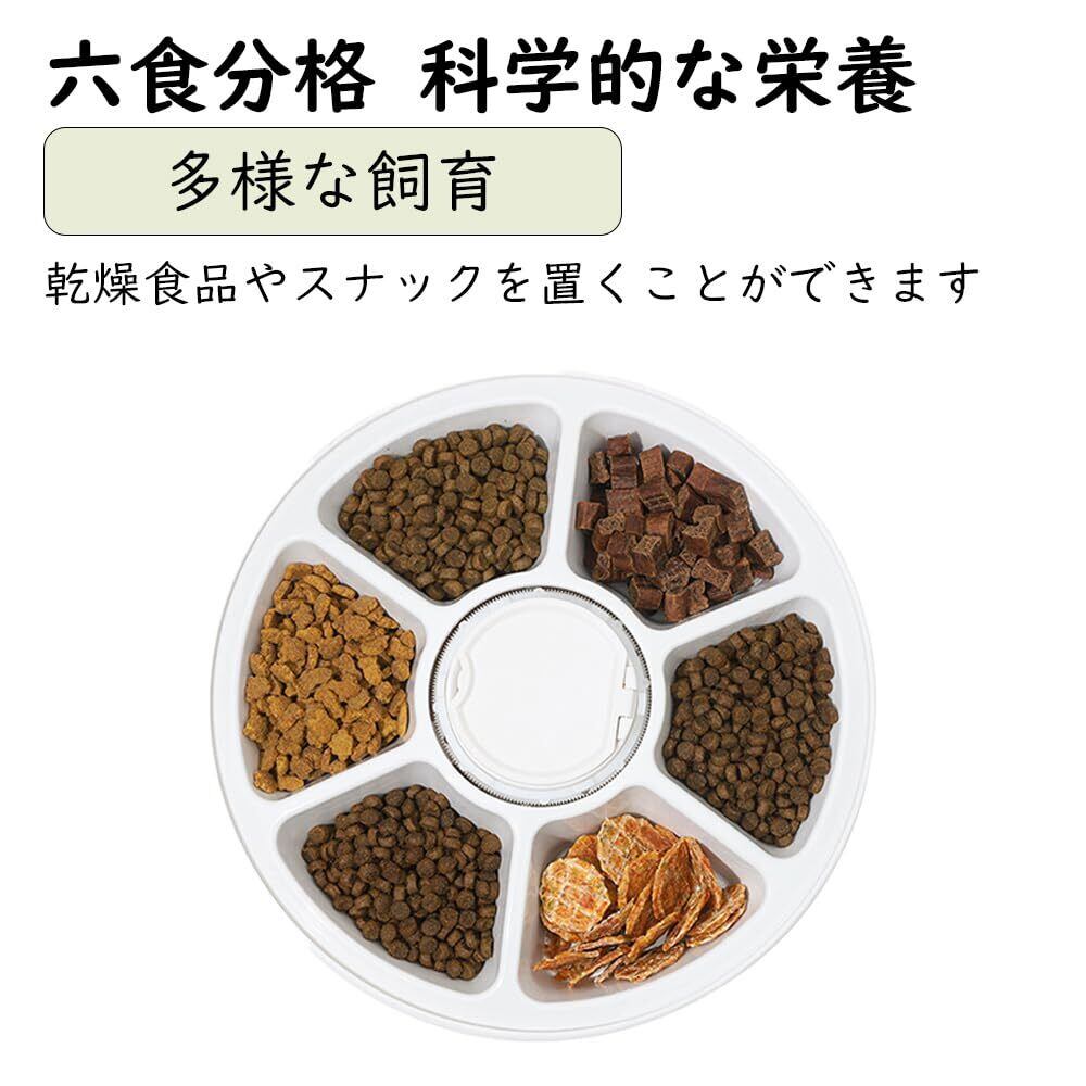 販売者「万里の雲」を選択してください。模倣販売業者の製品の品質はまちまちですので、信用しないでください。【多様でプログラム可能な給餌】 ドライフード、ウェットフード、スナックフードを保存するための 6 つの独立したコンパートメントがあり、さまざまな味覚を満たすのに最適です。調節可能なタイマーを使用して 1 日に最大 6 回の食事をスケジュールし、飼い主がいないときでもペットが健康的な食事を維持できるようにします。